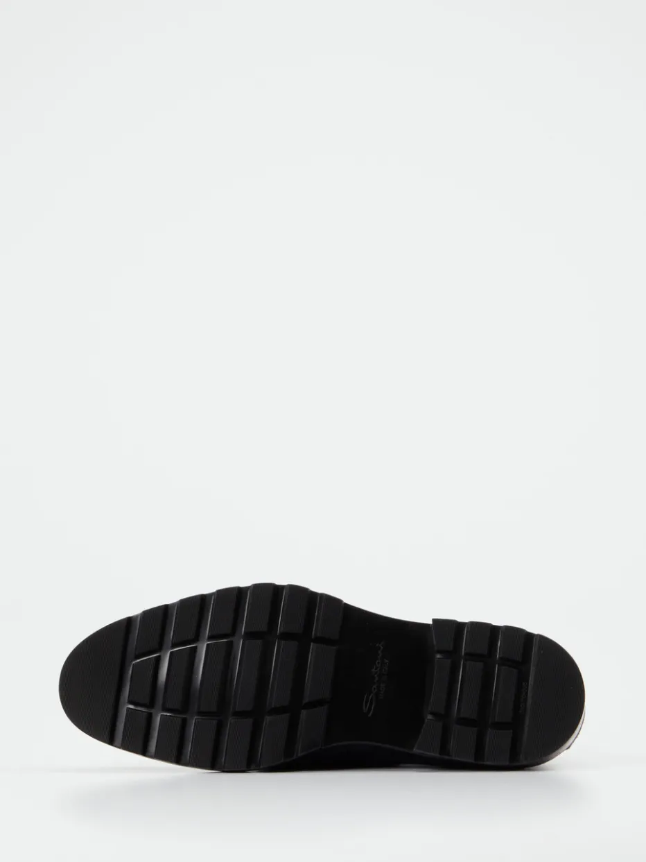Eleganz trifft Alltagstauglichkeit.Die Herrenschuhe von Santoni in der Kategorie Chukka Boots präsentieren sich stilvoll und vielseitig. Für Herbsttage im Büro oder beim Stadtspaziergang bieten diese knöchelhohen Stiefel aus samtig angeschliffenem Veloursleder in Nachtblau einen souveränen Auftritt. Die klassische Silhouette mit Ton-in-Ton-Nähten und strukturiertem Finish wird durch ein kontrastierendes Innenfutter aus orangefarbenem Kalbleder belebt. Eine robuste Gummisohle mit tiefem Profil sorgt für Trittsicherheit und orientiert sich am aktuellen Lug-Sole-Trend. Dezente Markendetails unterstreichen den hochwertigen Charakter. Kombiniert mit Kaschmirmantel und Lederhandschuhen entsteht ein zeitlos elegantes Herbstensemble. Hervorragender Komfort und handwerkliche Finesse – ein Schuh mit unverwechselbarer Santoni-Note.