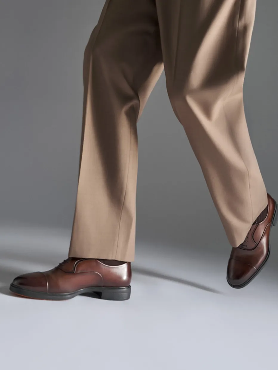 Santoni verbindet klassische Schuhmacherkunst mit italienischer Eleganz. Der cognacfarbene Oxford überzeugt durch exzellente Verarbeitung und ein dezentes, hochwertiges Design.