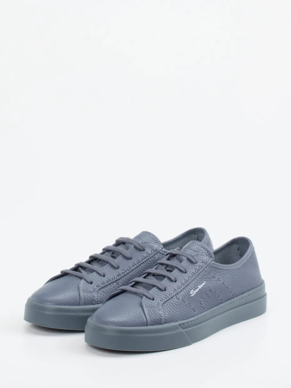 Schieferblauer Minimalismus trifft urbanen Anspruch.Dieser Herren-Sneaker von Santoni interpretiert die Low-Top-Silhouette neu. In modernen Alltagsszenarien überzeugt das Modell mit glattem, genarbtem Kalbleder und einer gummierten Laufsohle. Schieferblau dominiert als vielseitiger Farbton, kontrastiert von einer dezenten Logoprägung in Orange. Schnürung, tonale Nähte und das klassische Design bieten Stilvielfalt von Büro bis Freizeit. Leicht, ungefüttert und mit Einlagen kompatibel eignet er sich für anspruchsvolle Träger. Das sportiv-elegante Gesamtbild folgt Trends wie „Quiet Luxury“ und „Color-Blocking SS25“. Markentypische Wertigkeit in Form, Finish und dezenter Ästhetik.