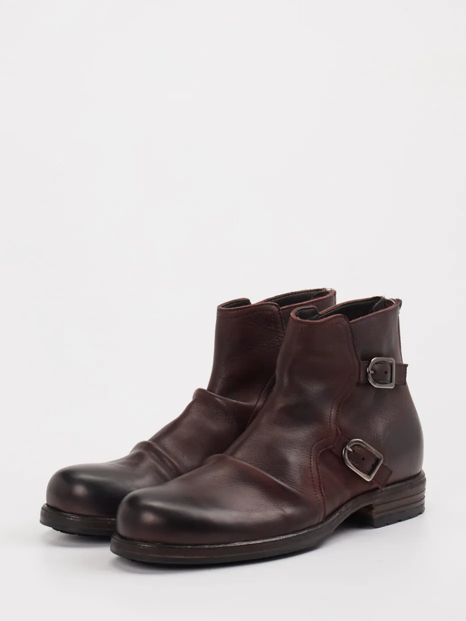 Hochwertiges Kalbleder in genarbtem Used-Look trifft auf funktionale Details wie Schnallen und Reißverschluss – perfekt für anspruchsvolle Casual-Styles mit Charakter.