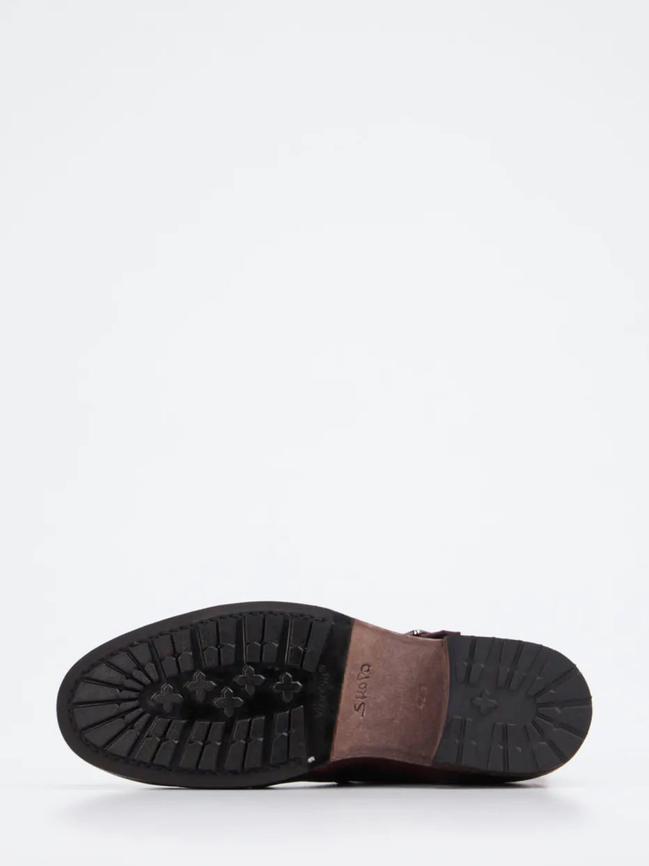 Maskuliner Stil mit Vintage-Note. Die Marke Shoto interpretiert klassische Herren-Stiefeletten als kernige Biker-Boots mit urbanem Anspruch. Echtes Kalbleder mit fein genarbter Oberfläche trifft auf eine dunkelbraune Farbgebung und markante Used-Effekte an der Spitze. Die knöchelhohe Silhouette wird durch doppelte silberfarbene Schnallen und einen rückseitigen Reißverschluss geprägt. Eine Ledersohle unterstreicht die hochwertige Verarbeitung, während robuste Utility-Elemente den aktuellen Distressed-Trend aufgreifen. Ideal in Kombination mit Jeans und Lederjacke für einen selbstbewussten Auftritt mit Stil. Shoto vereint handwerklichen Look mit hoher Alltagsfunktion – für authentische Männerstyles mit Substanz.