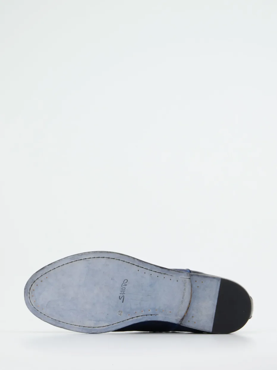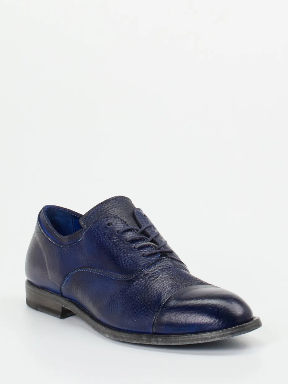 Schlichte Eleganz neu interpretiert.Shoto präsentiert mit diesem Derby-Schuh ein Herrenmodell klassischster Prägung. Ideal für Business-Termine oder stilbewusste Freizeitoutfits überzeugt dieser Schnürschuh durch das exklusive Obermaterial aus Hirschleder, das eine fein genarbte Oberfläche und eine leicht glänzende Zehenkappe aufweist. Das markant tintenblaue Finish wirkt zugleich individuell wie zurückhaltend. Offene Schnürung, klassische Rundform und eine durchgenähte Ledersohle mit Gummiintarsie am Absatz unterstreichen die hochwertige Ausführung. Der Vintage-inspirierte Look mit minimalistischer Note passt zu grauen Businesshosen oder dunklen Jeans. Ein Modell mit Charakter – für souveränen Auftritt in jeder Situation.