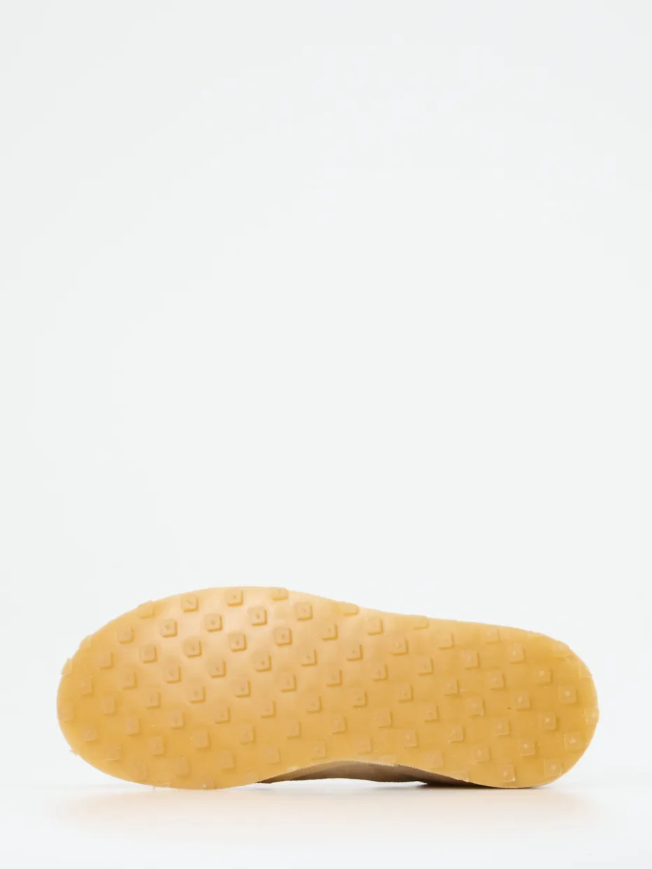 Der in Italien gefertigte Sneaker von Shoto verbindet sandfarbenes Veloursleder mit einem zeitgemäßen, urbanen Design. Quiet Luxury-Look trifft auf funktionale Outdoor-Tauglichkeit.