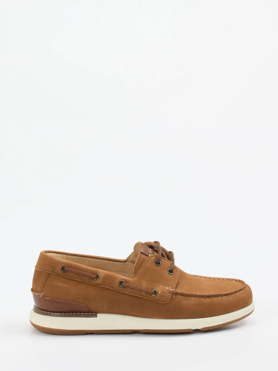Sommerlicher Klassiker mit Preppy-Charme.Sioux interpretiert den Herren-Bootsschuh in einer zeitgemäß sportiven Ausführung. Die Kombination aus samtig angeschliffenem Nubukleder in Cognacbraun und der weißen, leicht keilförmigen Gummisohle sorgt für eine moderne Leichtigkeit. Charakteristische Lederbänder und Kontrastnähte unterstreichen den moc-toe-Stil, seitliche Zierösen setzen optische Akzente. Innen sorgt ein Textilfutter für atmungsaktiven Komfort, das gepolsterte Wechselfußbett lässt sich durch eigene Einlagen ersetzen. Perfekt für Freizeit, Urlaub und entspannte Looks mit preppy Note. Harmoniert besonders gut mit Chinos oder Leinenhemden. Verbindet handwerkliche Qualität mit sommerlicher Nonchalance.