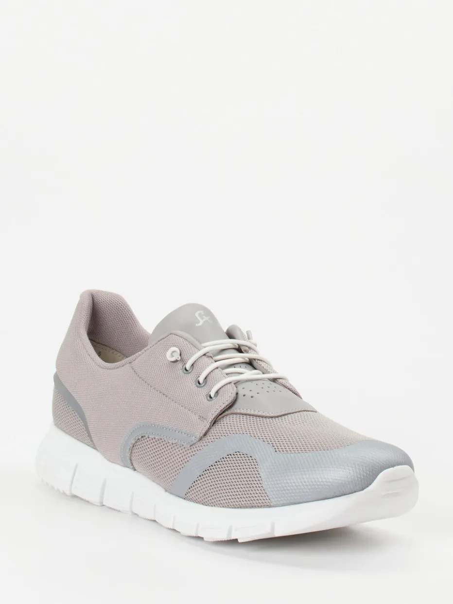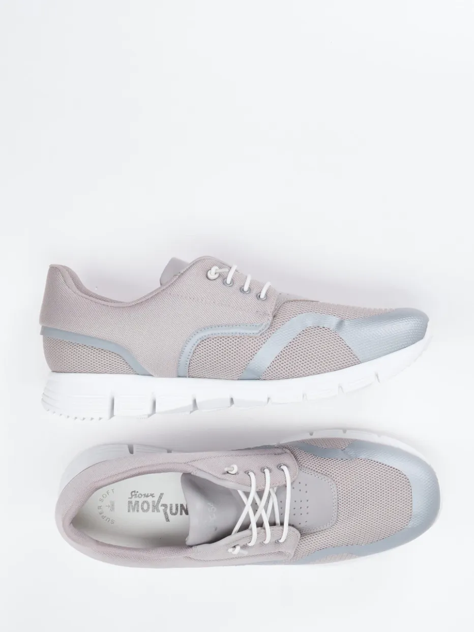 Leichtigkeit trifft auf cleane Linien.Der Herren-Sneaker von Sioux überzeugt als sportlich-minimalistischer Allrounder. Ideal für lange Tage auf den Beinen: Das leichte Modell kombiniert atmungsaktives Meshtextil mit silbernen Synthetik-Overlays für gezielten Schutz. Die hellgraue Farbpalette wirkt stilvoll zurückhaltend, während eine perforierte Zunge und der gepolsterte Schaft Komfort und moderne Akzente setzen. Die weiße Gummisohle sorgt für Flexibilität und Auftrittsdämpfung – ein klarer Tech-Runner-Anklang mit funktionalem Anspruch. Optimal abgestimmt auf den casual-sportiven Alltag oder leichte Trainingseinheiten. Ein Schuh mit sichtbar urbaner Dynamik – präzise gefertigt im typisch komfortstarken Sioux-Stil.