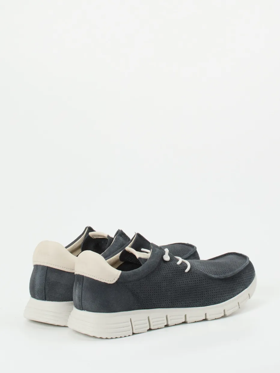 Urbaner Komfort für entspannte Momente. Die Marke Sioux präsentiert mit diesem Herren-Sneaker ein Casual-Modell mit klarer Formensprache und außergewöhnlichem Trageerlebnis. Das geprägte Veloursleder, samtig angeschliffen und in dunkelblauer Farbgebung, sorgt dank flächiger Perforation für optimale Atmungsaktivität – ideal für Alltag und Freizeit. Gepaart mit einer elastischen Schnürung, weich gepolsterten Fersenkappe und ultra-flexibler Gummisohle mit Flexkerben entsteht ein besonders angenehmes Laufgefühl. Der kontrastierende Fersenbesatz in Beige unterstreicht die zeitgemäße Streetwear-Optik. Perfekt kombinierbar mit Stretch-Jeans und Basic-T-Shirt. Ein Balanceakt aus Komfort und Stil – typisch Sioux.