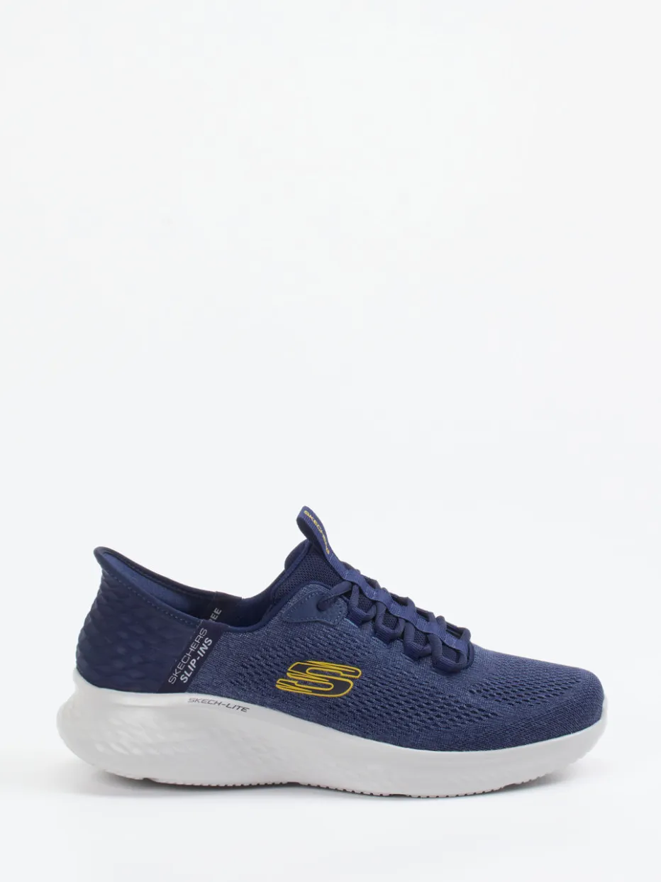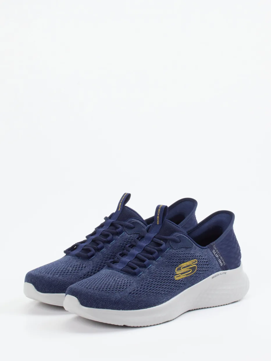 Sportiver Komfort neu interpretiert.Skechers präsentiert einen innovativen Slip-On Sneaker, der moderne Athleisure-Ästhetik mit technologischem Komfort verbindet. Ideal für Alltag und Fitness-Einheiten: Dieser navyblaue Slip-On kombiniert atmungsaktives Mesh-Textil und eine elastische Einstiegslösung mit einem Air-Cooled Memory Foam Fußbett für optimale Druckentlastung. Die sportlich-dynamische Silhouette wird durch weiß abgesetzte Gummisohle, goldfarbenes Logo-Detail und strukturierte Ton-in-Ton-Oberfläche ergänzt. Die verstärkte Ferse stabilisiert, während die griffige Sohle das natürliche Abrollen unterstützt. Durch seine Unisex-Ausrichtung und pflegeleichte Waschbarkeit trifft er den modernen Komforttrend der Saison. Skechers vereint innovativen Laufkomfort mit reduzierter Ästhetik.