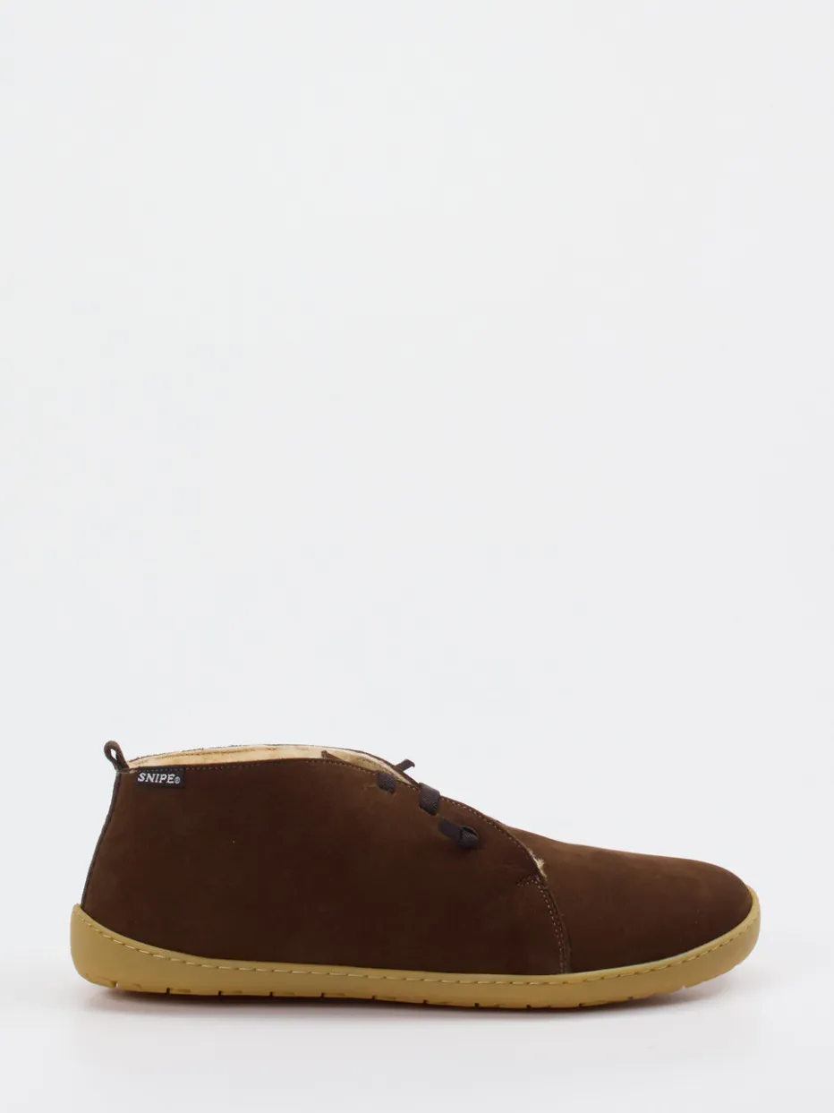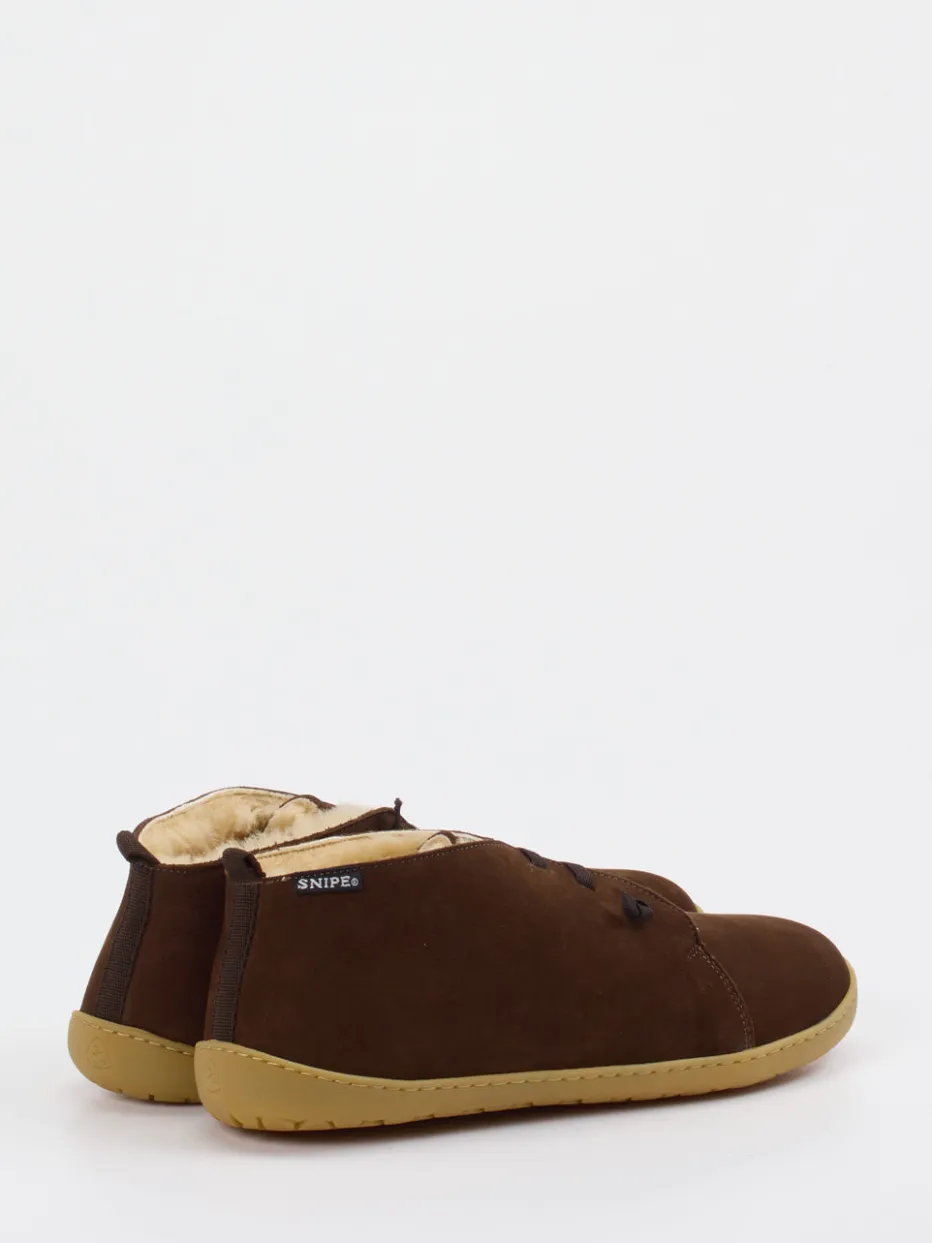 Für entspannte Wintertage mit Stil.Der Schnürboot von Snipe verbindet barfußähnliches Gehen mit urbaner Wintertauglichkeit. Aus weichem, samtig angeschliffenem Nubukleder gefertigt, überzeugt das Modell in schokobrauner Optik mit puristischer Linienführung und einer flexiblen Gummisohle. Die knöchelhohe Silhouette mit Elastschnürung bietet Komfort ohne Schleifebinden, das wärmende Lammfellfutter sorgt selbst an frostigen Tagen für Wohlgefühl. Ton-in-Ton-Nähte und ein dezent platziertes Logo-Label betonen den minimalistischen Look. Ideal für relaxed Casual-Outfits in Naturtönen. Ein Schuh für anspruchsvolle Komfortliebhaber mit Understatement-Anspruch.