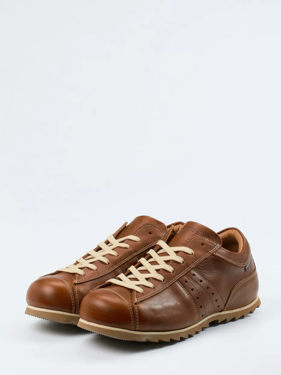 Stilvoll durch Alltag und Office.Snipe präsentiert diesen Herren-Sneaker in cognacbraunem Kalbleder. Das Modell vereint eine klassische Low-Top-Form mit einem dezent retro-inspirierten Design und passt sowohl ins Büro als auch in die Freizeit. Hochwertiges Kalbleder mit matter Oberfläche trifft auf beige Kontrastnähte und eine robuste Schnürung. Die gummierte Profilsohle mit Haifischdesign sorgt für sicheren Tritt, während das Innenfutter aus Leder und das herausnehmbare Fußbett angenehmen Komfort bieten. Die cognacbraune Farbgebung harmoniert mit Casual-Chinos oder gepflegter Freizeitkleidung. Ein Premium-Sneaker mit dezenter Eleganz und funktionalem Anspruch von Snipe.