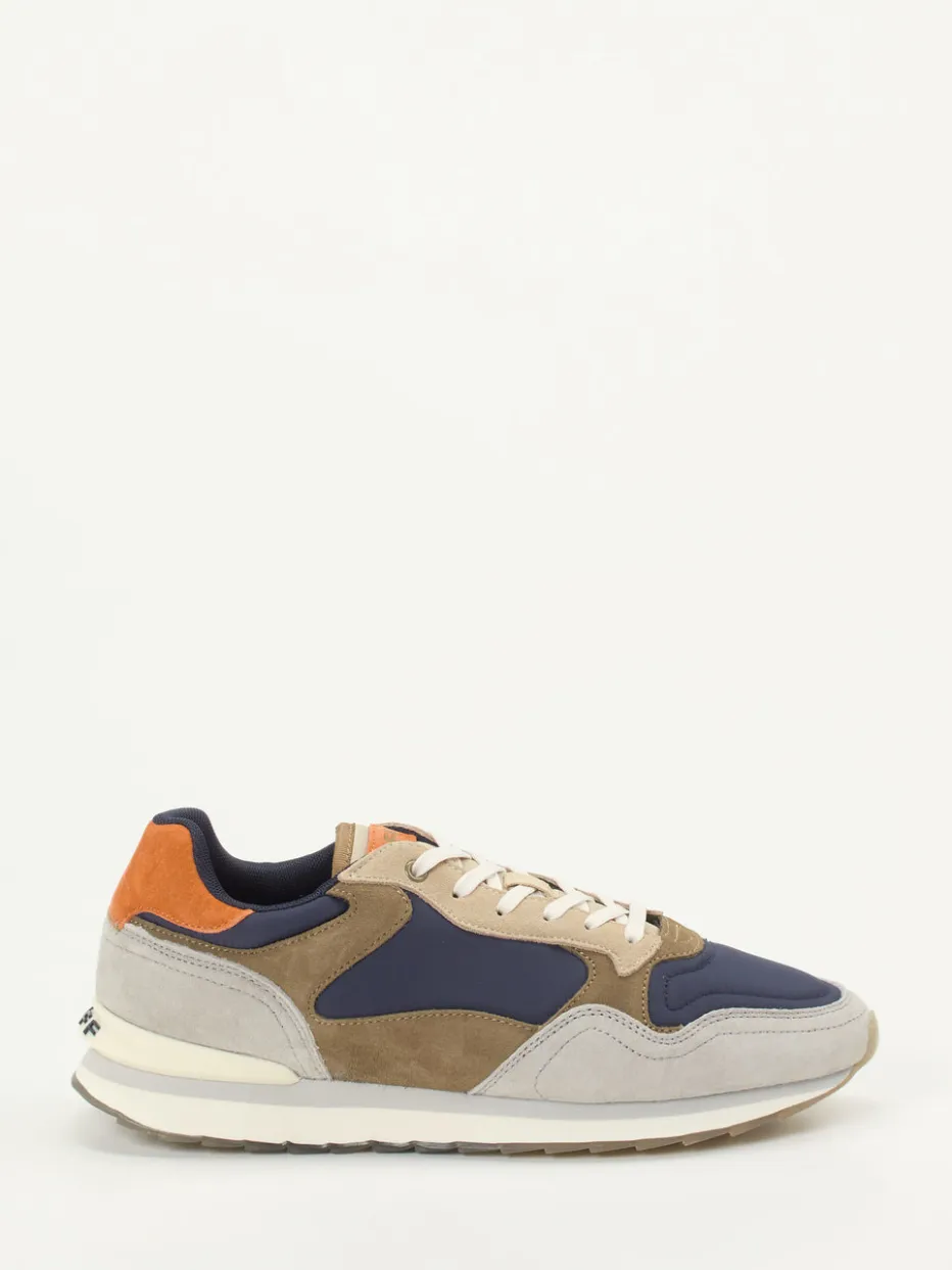 Der Sneaker Biarritz von THE HOFF BRAND bringt frischen Wind in das Freizeit-Repertoire. Ein City-Spaziergang oder ein entspannter Wochenendtrip findet sein modisches Pendant in diesem Retro-Sneaker. Die Kombination aus samtig angeschliffenem Veloursleder und luftdurchlässigem Hightech-Mesh sorgt für angenehmen Tragekomfort. Dunkelblau dominiert den Look, akzentuiert durch hellgraue, taupefarbene und rostorange Elemente im Color-Blocking-Stil. Die klassische Runner-Form wird durch gepolsterten Schaftrand, cremefarbene Schnürung und eine farblich abgestimmte Profilsohle mit Marken-Print dynamisch ergänzt. Streetwear-inspiriert und trendbewusst lässt sich der Schuh vielseitig zu Bomberjacke und Canvas-Cap kombinieren. Zeitgemäßes Design mit hohem Komfortanspruch – typisch HOFF.