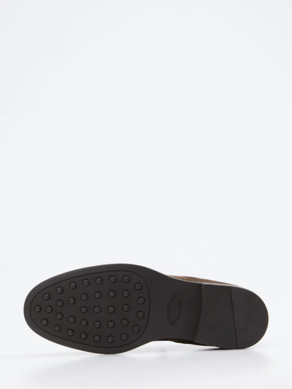 Stilsicherheit für jeden Herbsttag.Tod’s interpretiert die klassische Desert Boot-Kategorie neu – elegant und funktional zugleich. Für den Weg ins Büro oder stilvolle Freizeitmomente liefern diese Desert Boots aus kaffeebraunem Veloursleder mit samtig-matter Oberfläche das passende Maß an Understatement. Die knöchelhohe Form, die Zwei-Ösen-Schnürung und die schwarzen Gummisohlen mit Noppenprofil unterstreichen das dezente Design. Hochwertiges Glattlederfutter sorgt für ein angenehmes Tragegefühl. Eingebettet in den Trend „Quiet Luxury“ verschmelzen Heritage-Look und moderne Zurückhaltung. Ein souveräner Begleiter für minimalistische Casual- und Business-Looks mit markentypischer Finesse.