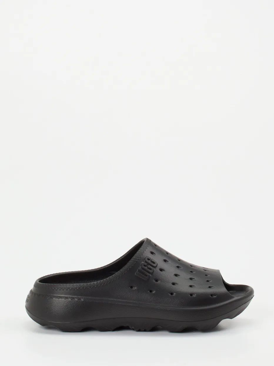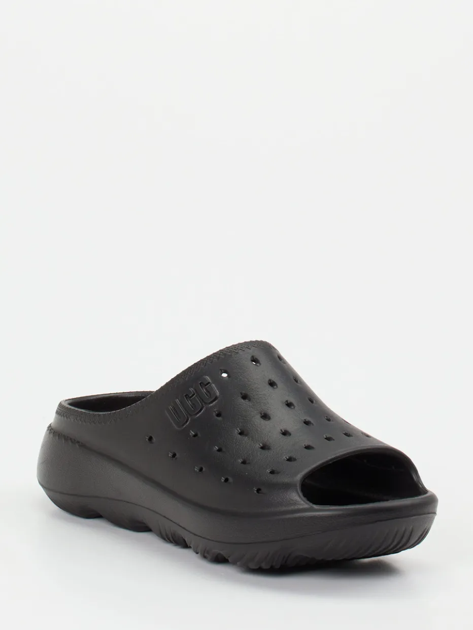 UGG präsentiert mit dieser Komfort-Pantolette ein unisex Modell für entspannte Stunden. Die tiefschwarze Slide aus hochwertigem Gummi mit matter Oberfläche bietet dank ergonomischem Fußbett und doppelt gepolsterter Innensohle optimale Dämpfung.