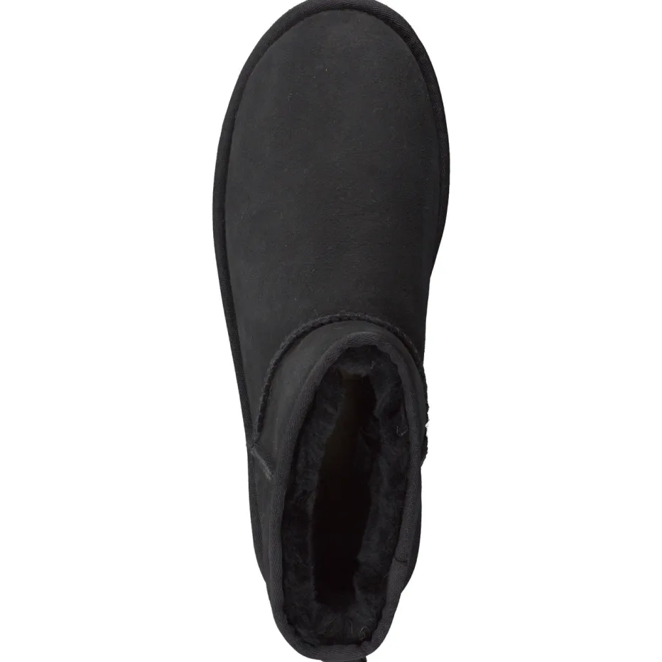 Das tiefschwarze Veloursleder und das echte Lammfell sorgen für stilvolle Wärme an kalten Tagen. Ein UGG-Klassiker mit zeitgemäßem Minimalismus und hohem Tragekomfort.