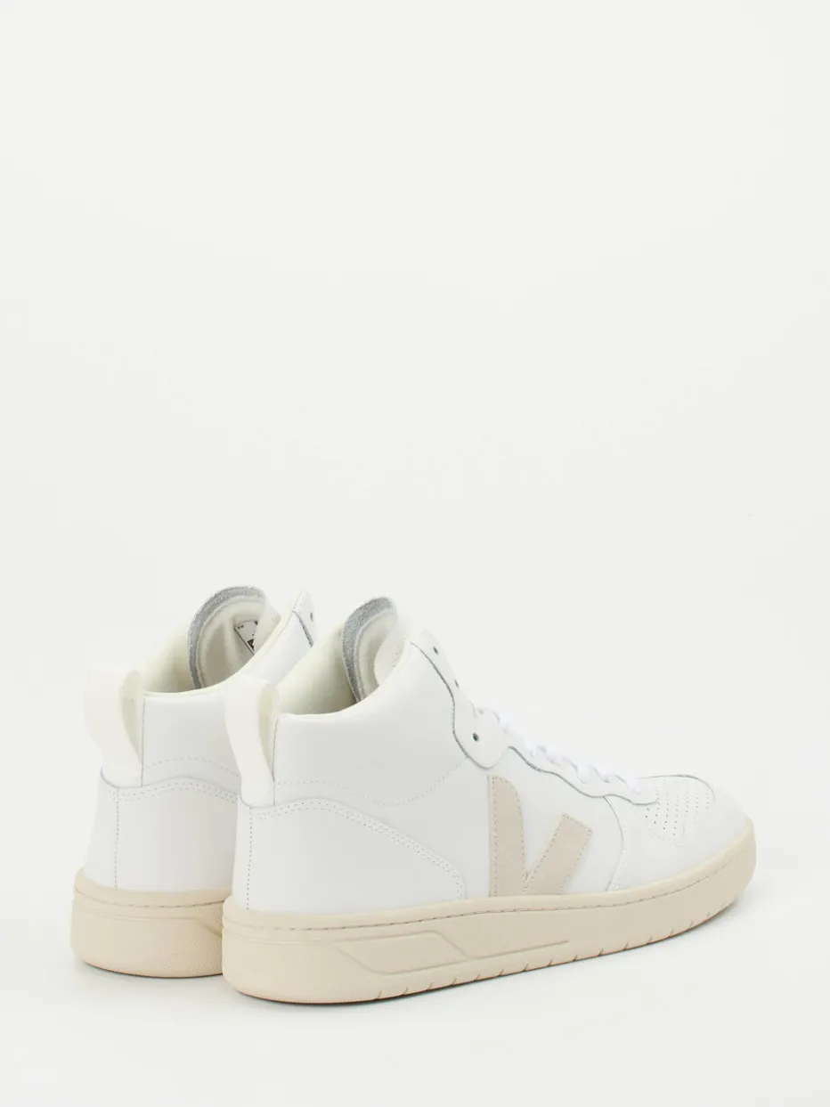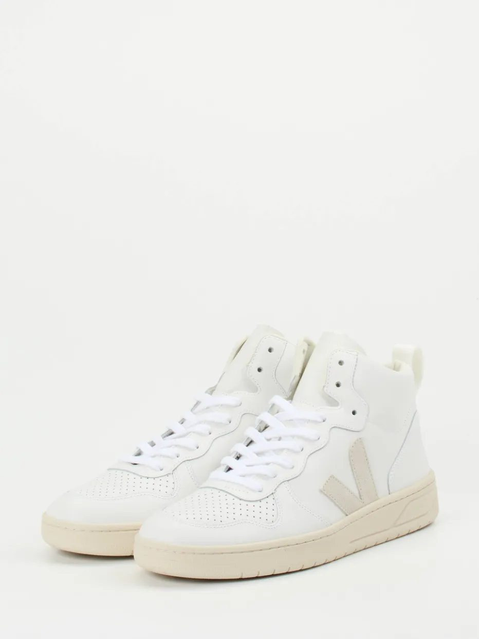 Urbaner Purismus mit Retro-Charakter.VEJA interpretiert den High-Top Sneaker als cleanes Essential für jeden Tag. Ob beim Stadtbummel oder im Café mit Freunden – das weiße Leder dieses Sneakers kombiniert mit einer Gummisohle aus Naturkautschuk schafft einen dezenten, sportlich-modernen Look. Die Oberfläche wirkt matt, während Ton-in-Ton-Nähte und ein appliziertes Wildleder-Logo dezente Akzente setzen. Textiles Innenfutter und perforierte Zehenkappe sorgen für Komfort und Atmungsaktivität. Von der Mode inspiriert, passt der Schuh nahtlos zur »Clean Aesthetic« und Retro-Court-Styles der aktuellen Saison. Ideal kombinierbar mit Basics in Creme oder Beige. Ein stilvoller Begleiter von VEJA – minimalistisch, funktional und klar im Design.