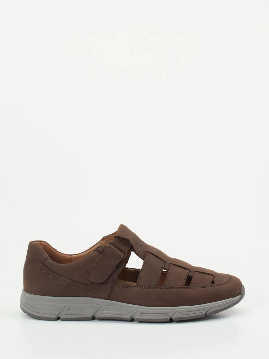 Leicht, luftig, funktional – für entspannte Sommertage.Waldläufer präsentiert mit diesem Herren-Halbschuh eine gelungene Kombination aus Sandalenoptik und Alltagstauglichkeit. Ideal für Freizeit und Zuhause, überzeugt das Modell aus dunkelbraunem Nubukleder mit samtig-matter Oberfläche. Cut-Outs machen es angenehm luftig, während das lederbezogene Innenfutter ein gesundes Fußklima unterstützt. Der praktische Klettverschluss erlaubt individuelles Anpassen, und die graue, profilierte Gummisohle sorgt für einen sportiv-komfortablen Auftritt. Perfekt für alle, die casual Funktionalität mit dezentem Design schätzen. Hochwertiger Komfort in handwerklicher Waldläufer-Qualität.