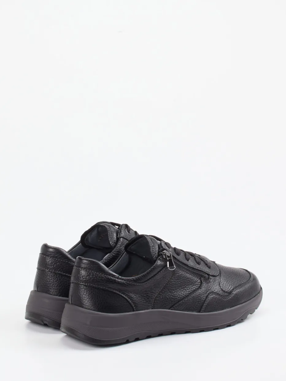 Ob beim Stadtbummel oder auf dem Weg zur Arbeit – dieser Sneaker aus schwarzem Hirschleder mit charaktervoller, genarbter Oberfläche bietet angenehmen Halt und weichen Tritt. Die sportlich-klassische Silhouette wird durch Ton-in-Ton-Nähte, einen seitlichen Reißverschluss und einen gepolsterten Schaftrand ergänzt. Innen sorgt ein gepolstertes Fußbett in Weite K für Tragekomfort. Die rutschfeste Gummisohle bietet zuverlässigen Grip bei jedem Schritt. Im Trend liegt der Look durch seinen reduzierten Stil mit Quiet-Comfort-Charakter.