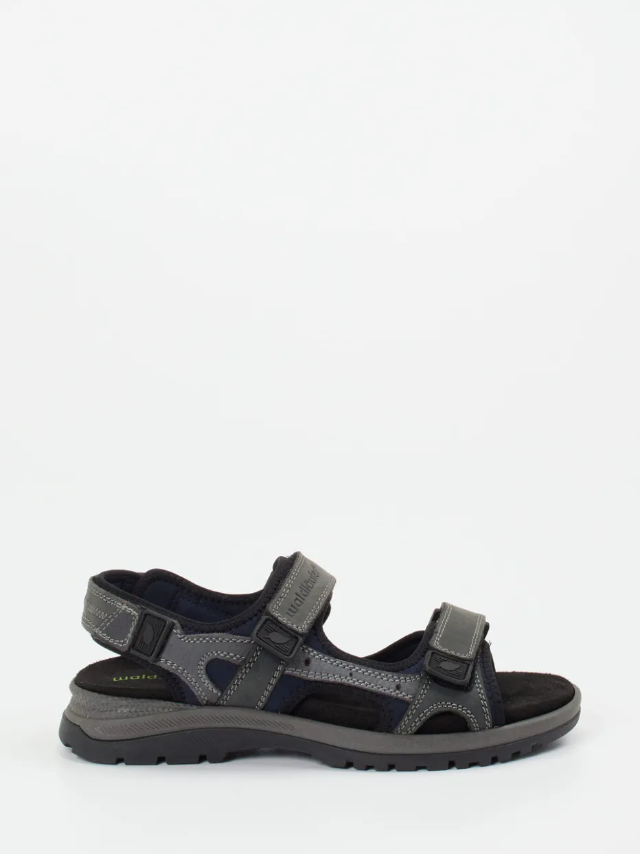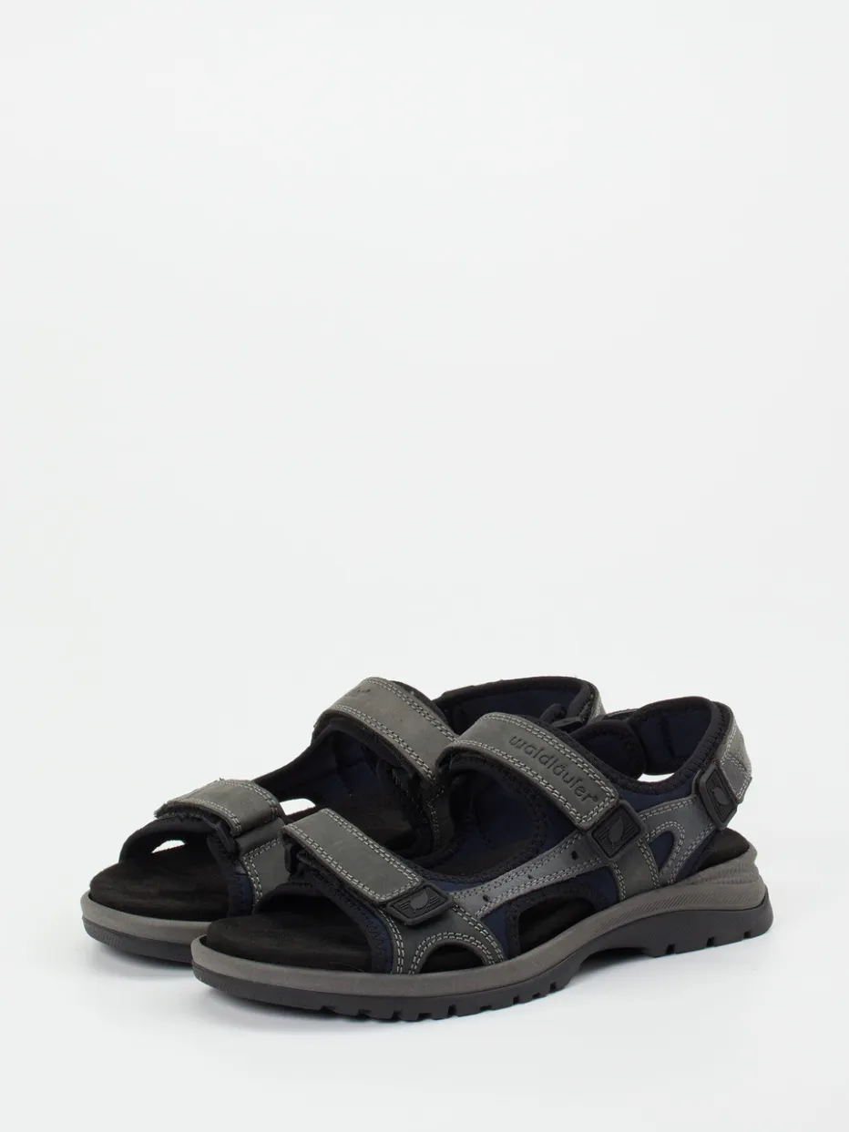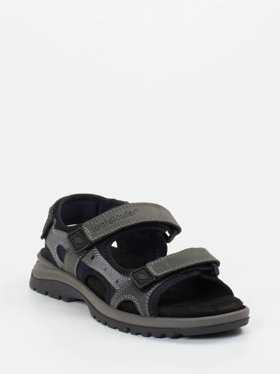 Die funktionale Herren-Sandale von Waldläufer kombiniert wetterbeständiges Fettleder mit einem ergonomischen Fußbett und griffiger Profilsohle – ideal für komfortbewusstes Outdoor-Gehen.