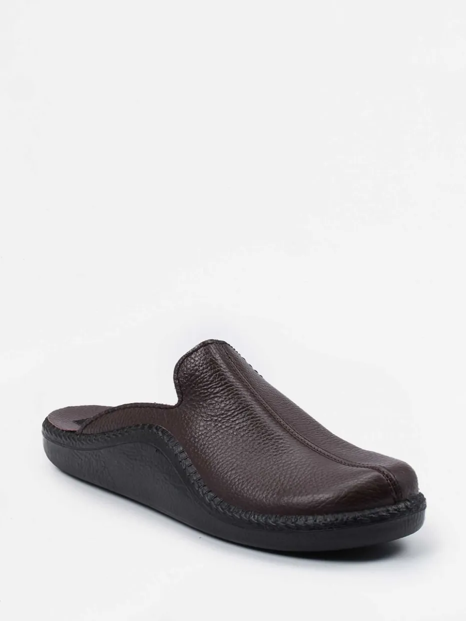 Komfort neu definiert.Westland präsentiert einen bequemen Hausschuh aus edlem Kalbleder. Für entspannte Stunden daheim bietet dieser Schlupfschuh eine gelungene Kombination aus Komfortanspruch und Stilbewusstsein. Das dunkelbraune Kalbleder ist genarbt und wird durch eine feine Mittelnaht dezent strukturiert. Innen sorgt ein weiches Textilfutter mit gepolsterter Innensohle für zusätzlichen Tragekomfort. Die ergonomisch geformte PU-Sohle mit rutschhemmendem Profil unterstützt natürliche Bewegungen. Minimalistisches Design trifft auf funktionale Eleganz – perfekt für stilvolle Homewear-Momente. Westland verbindet Alltagstauglichkeit mit moderner Komfortästhetik.
