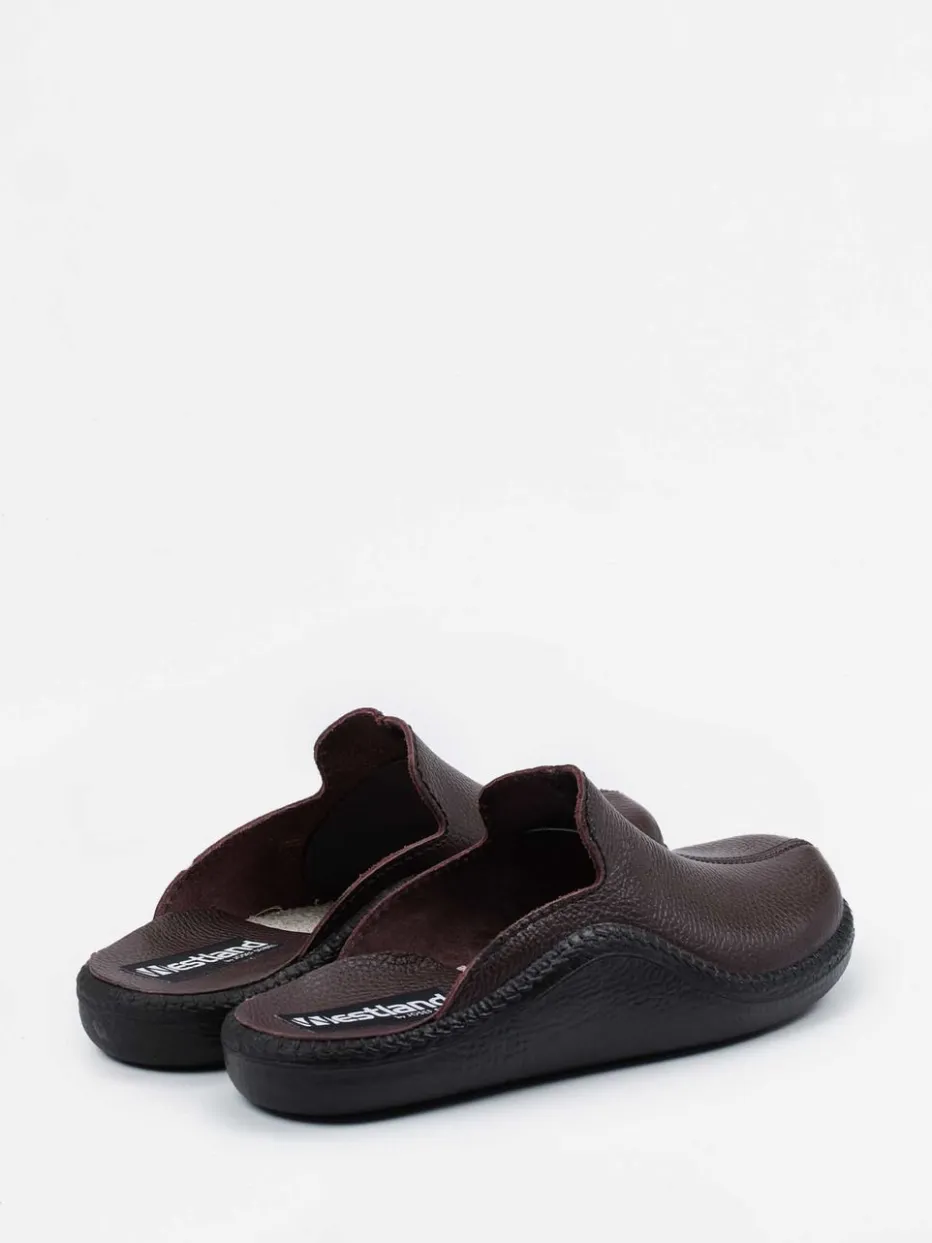 Die Hausschuh-Pantolette von Westland überzeugt durch hochwertiges, genarbtes Kalbleder und ergonomisch geformte PU-Sohle – ideal für entspanntes Tragen im Homewear-Kontext.