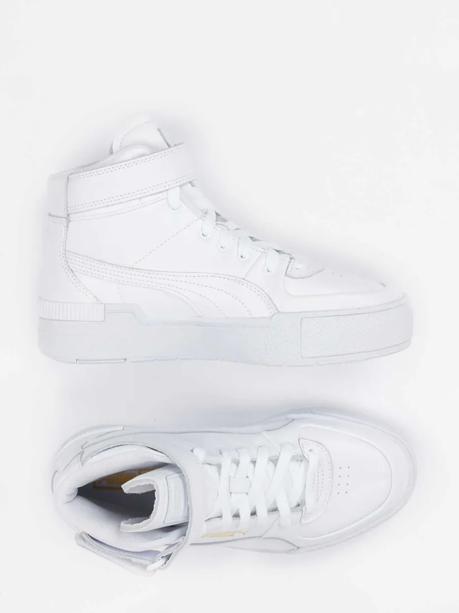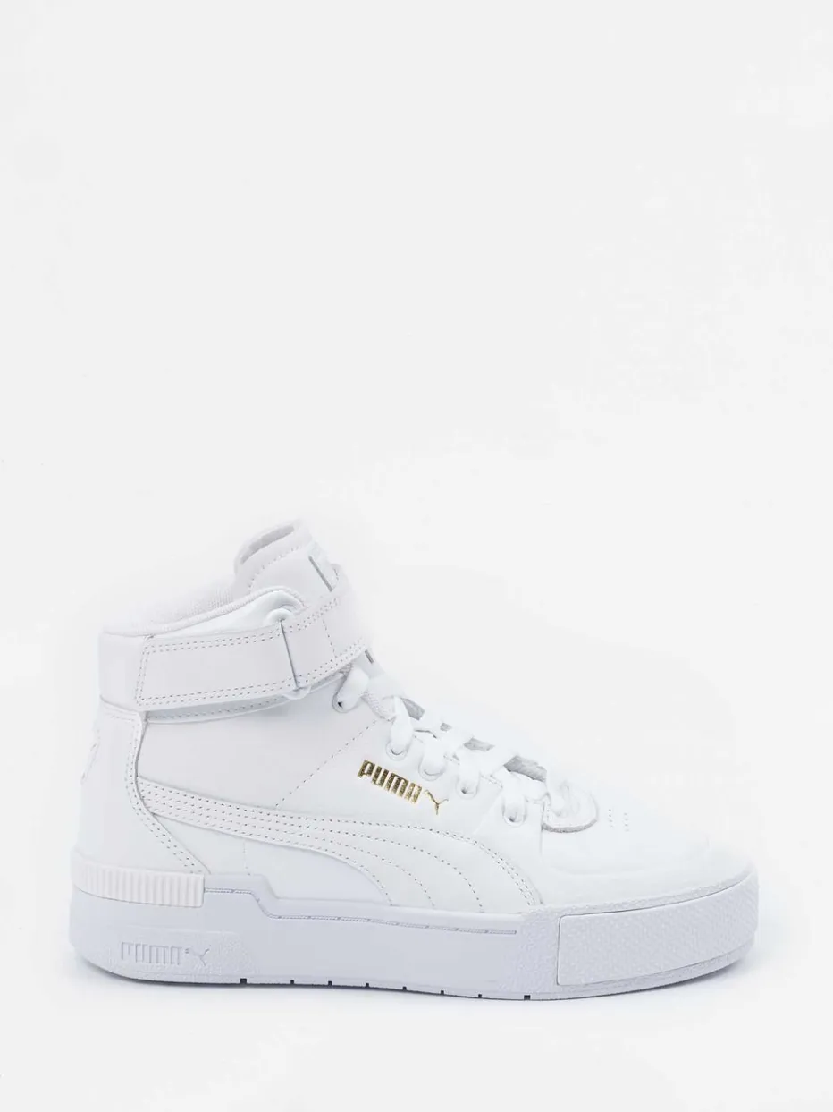 Streetstyle mit Heritage-Flair.Puma präsentiert mit diesem High-Top Sneaker ein Modell, das sportliche Eleganz und Retro-Charakter vereint. Für urbane Styles mit klarer Haltung sorgt das hochwertige Kalbleder mit matter Oberfläche, ergänzt durch hellgraue Akzente und goldfarbene Logoprägungen. Die knöchelhohe, voluminöse Silhouette bietet dank Schnürung und Klettverschluss sicheren Halt, während die gepolsterte Zunge und Textilfütterung für Tragekomfort stehen. Inspiriert von klassischen Basketball-Silhouetten passt der Sneaker perfekt zu lässigen Streetwear-Outfits im „Quiet Luxury“-Trend. Ideal kombinierbar mit Oversized Hoodie und weißen Sportsocken. Ein Model für alle, die sportliche Individualität mit hochwertigen Materialien verbinden möchten.