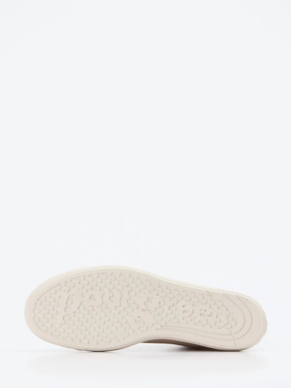 Komfort trifft auf Quiet Luxury. Paul Green präsentiert mit diesem High-Top-Sneaker ein elegantes Modell in der Damenkollektion. Ideal für entspannte Tage im urbanen Alltag: Das Obermaterial aus Kalbleder zeigt sich in genarbter Struktur und geschmackvollem Cremeweiß. Die Kombination aus Schnürung und seitlichem Reißverschluss erleichtert das Anziehen, während die flache Gummisohle samt 3 cm Absatz dezenten Komfort bietet. Tonale Logo-Prägung, silberfarbene Ösen und klare Linien betonen die minimalistische Silhouette. Das Modell passt perfekt zu Joggern oder monochromen Casual-Outfits. Stilsicherer Auftritt mit kombinierfreudigem Understatement.