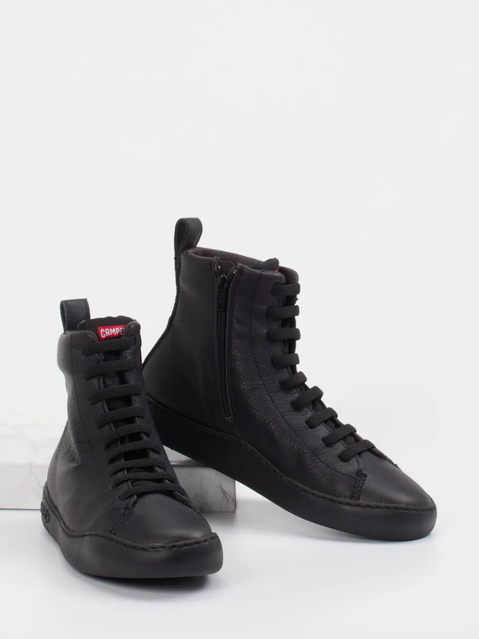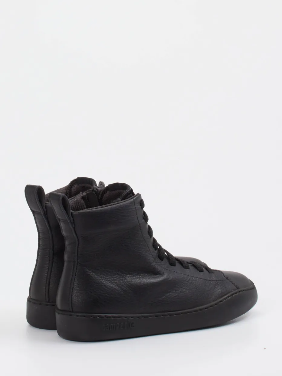 Dieser schwarze High-Top Sneaker von Camper überzeugt durch strukturiertes Glattleder, einen verdeckten Reißverschluss und dezente Streetwear-Elemente.