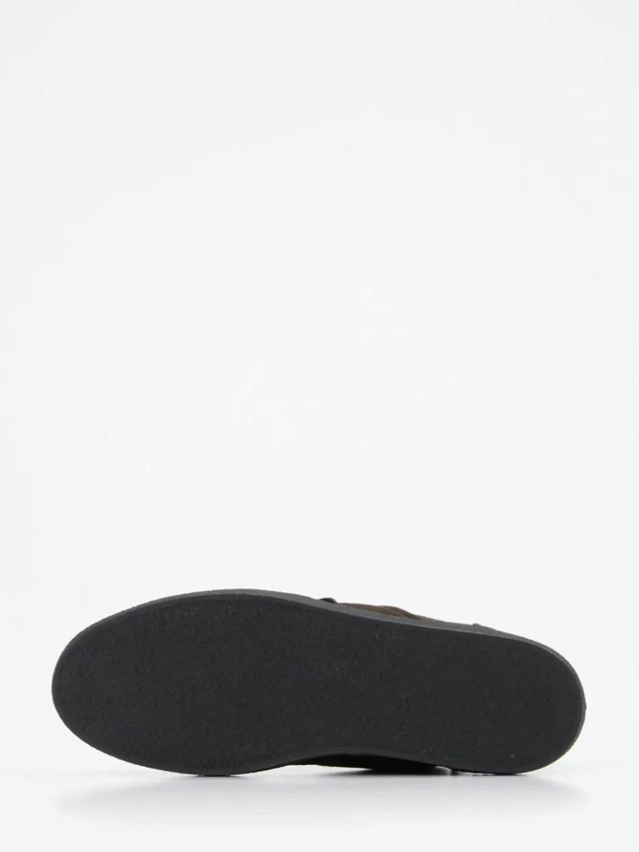 Ob auf dem Stadtspaziergang oder im Café – das Modell bietet mit wärmendem Lammfellfutter und rutschhemmender Gummisohle zuverlässigen Komfort. Die klassisch-sportliche Silhouette in Dunkelbraun und dezente Ton-in-Ton-Nähte unterstreichen den minimalistischen Look. Ein seitlicher Reißverschluss erleichtert das An- und Ausziehen. Die stilvolle Kombination aus Funktionalität und Understatement passt zum Trend „Quiet Luxury“. Kombiniert mit Kaschmir oder Leder veredelt dieser Sneaker jedes Relaxed-Winteroutfit.