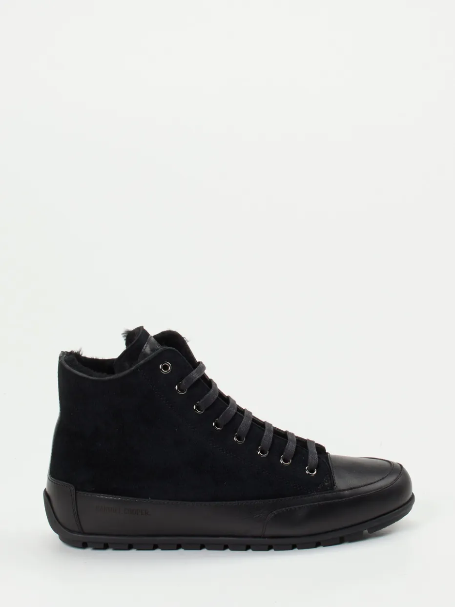 Schwarz und stilvoll: Dieser High-Top Sneaker von Candice Cooper verbindet samtiges Veloursleder mit glattem Kalbleder zu einem urbanen Look mit funktionalem Anspruch.