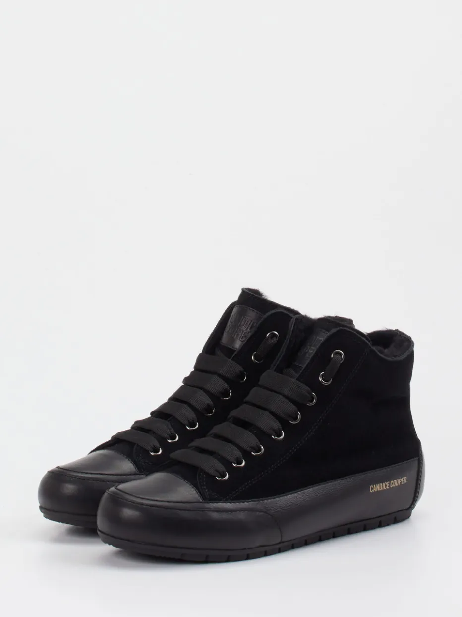 Urbaner Minimalismus trifft Komfort.Candice Cooper bietet mit dieser Damen-Schnürstiefelette einen stilvollen High-Top-Sneaker für die kalte Jahreszeit. Für den Alltag in der Stadt oder entspannte Wintertage überzeugt das Modell durch hochwertiges Velours-/Glattleder mit matter und glatter Oberfläche. In klassischem Schwarz und mit goldfarbenem Markenprint designt, zeigt sich die rund zulaufende, knöchelhohe Silhouette clean und modern. Das Innenfutter sorgt für angenehme Wärme, während Gummisohle und Reißverschluss Funktionalität und Tragekomfort steigern. Inspiriert vom Streetwear-Look, passt der Sneaker ideal zu monochromen Winteroutfits. Candice Cooper steht hier für urbanen Chic mit Anspruch an Material und Verarbeitung.