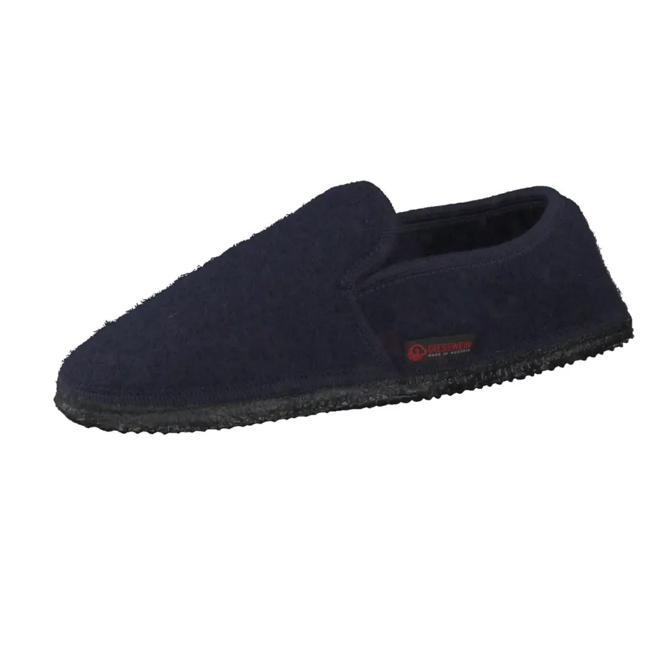 Minimalistisch und behaglich zugleich.Giesswein bietet mit diesen Hüttenschuhen ein stilvolles Modell für den Innenbereich. Ideal für gemütliche Momente im Alltag: Der Hausschuh aus dunkelblauer Schafswolle überzeugt durch seine filzige Haptik und geschlossene Form. Seitliche Elastikeinsätze neben der hochgezogenen Lasche erleichtern den Einstieg, während eine rutschfeste Gummisohle zuverlässigen Halt auf glatten Böden bietet. Dezente Ton-in-Ton-Nähte und ein kleines Label unterstreichen die minimalistische Anmutung im Sinne des „Quiet Luxury“-Trends. Perfekt zu Loungewear in Naturtönen kombinierbar. Natürliches Material trifft auf langlebige Verarbeitung – typisch Giesswein.