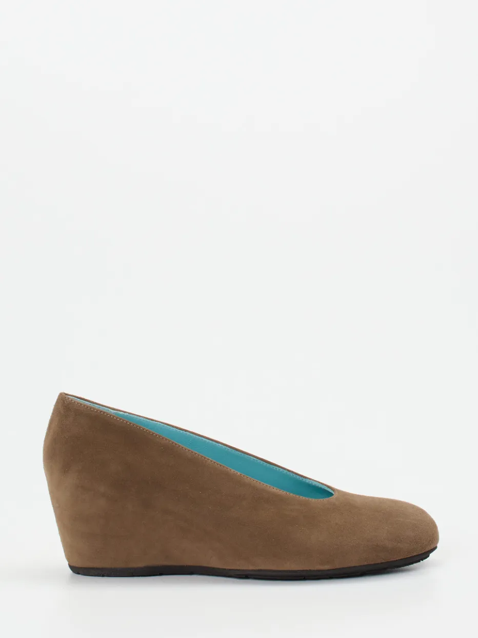 Der Keilpumps von Thierry Rabotin verbindet samtiges Veloursleder mit einem modernen Retro-Look. Farbige Details und ergonomischer Komfort machen das Modell zum vielseitigen Begleiter.