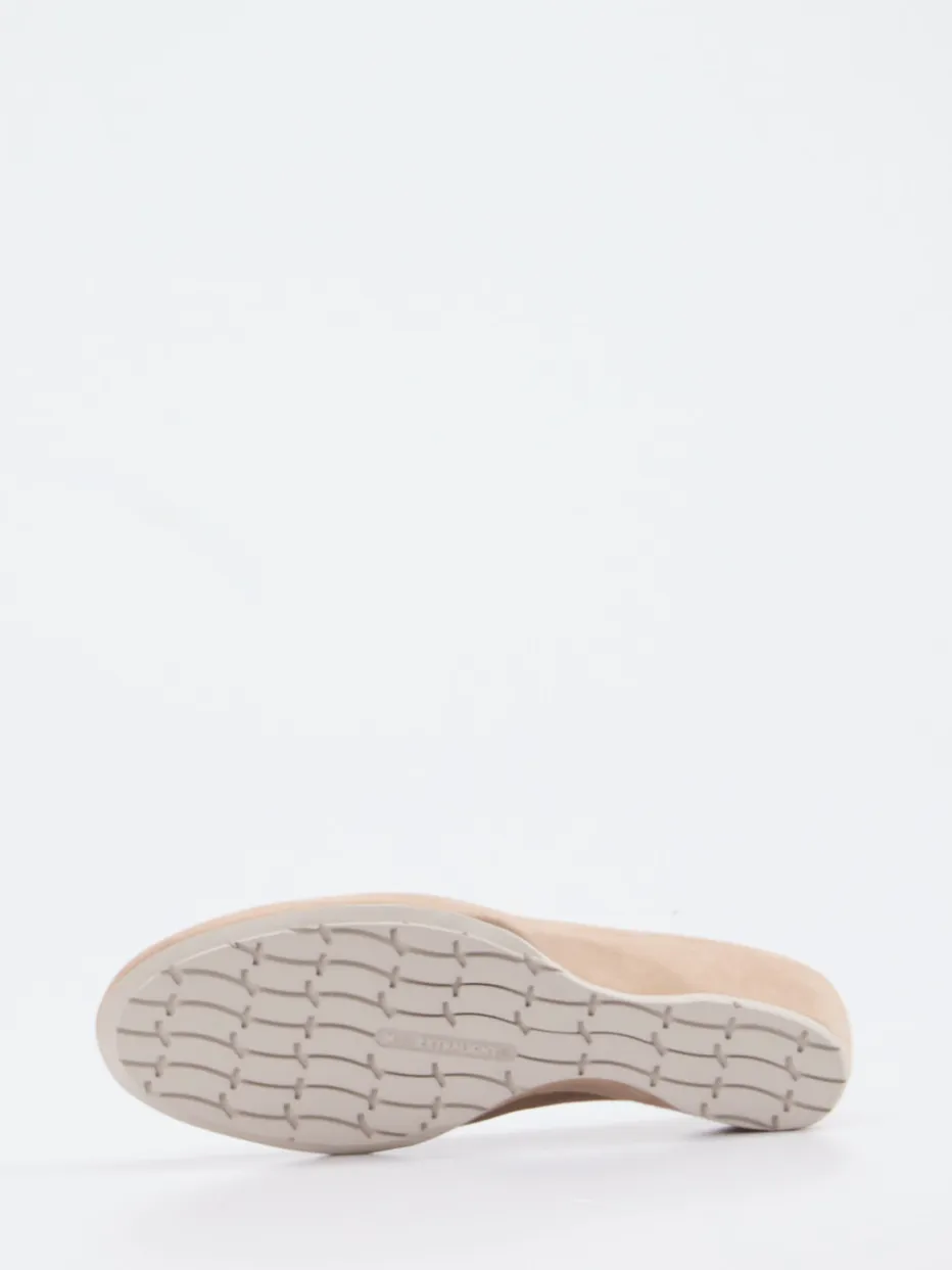 Leichtfüßig durch Büro und Alltag.Thierry Rabotin präsentiert einen eleganten Damen-Keilpumps, der Stil und Tragekomfort mühelos verbindet. Für stilvolle Tage im Office oder entspannte Business-Termine bietet das Modell „Tracy“ mit seinem samtigen Veloursleder in zartem Beige eine harmonisch-ruhige Ausstrahlung. Der lederbezogene Keilabsatz verleiht eine dezente Höhe von 5 cm und unterstreicht das minimalistische Design mit raffiniertem Flechtband über dem Spann. Das weich gepolsterte Innenfutter aus türkisfarbenem Lammnappa sorgt für einen überraschenden Farbakzent und angenehmes Fußgefühl. Die Extralight-Gummisohle zeigt rutschhemmende Eigenschaften und hohe Flexibilität. Ideal zu Ton-in-Ton-Outfits in Naturtönen kombinierbar. Federleicht und unaufdringlich luxuriös – perfekt für komfortbewusste Looks.