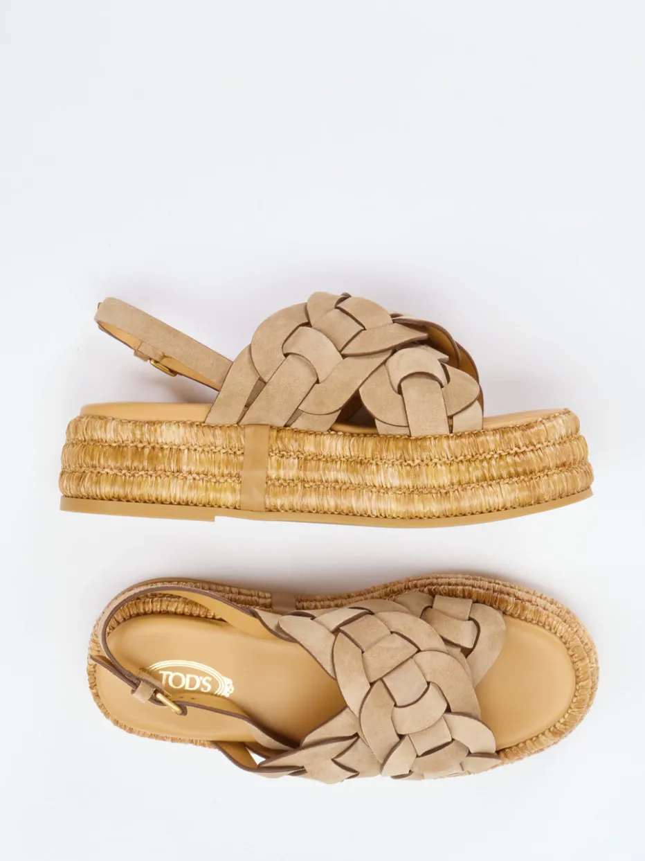 – Keilsandalette aus Flechtleder in Sandbeige*Tod’s New