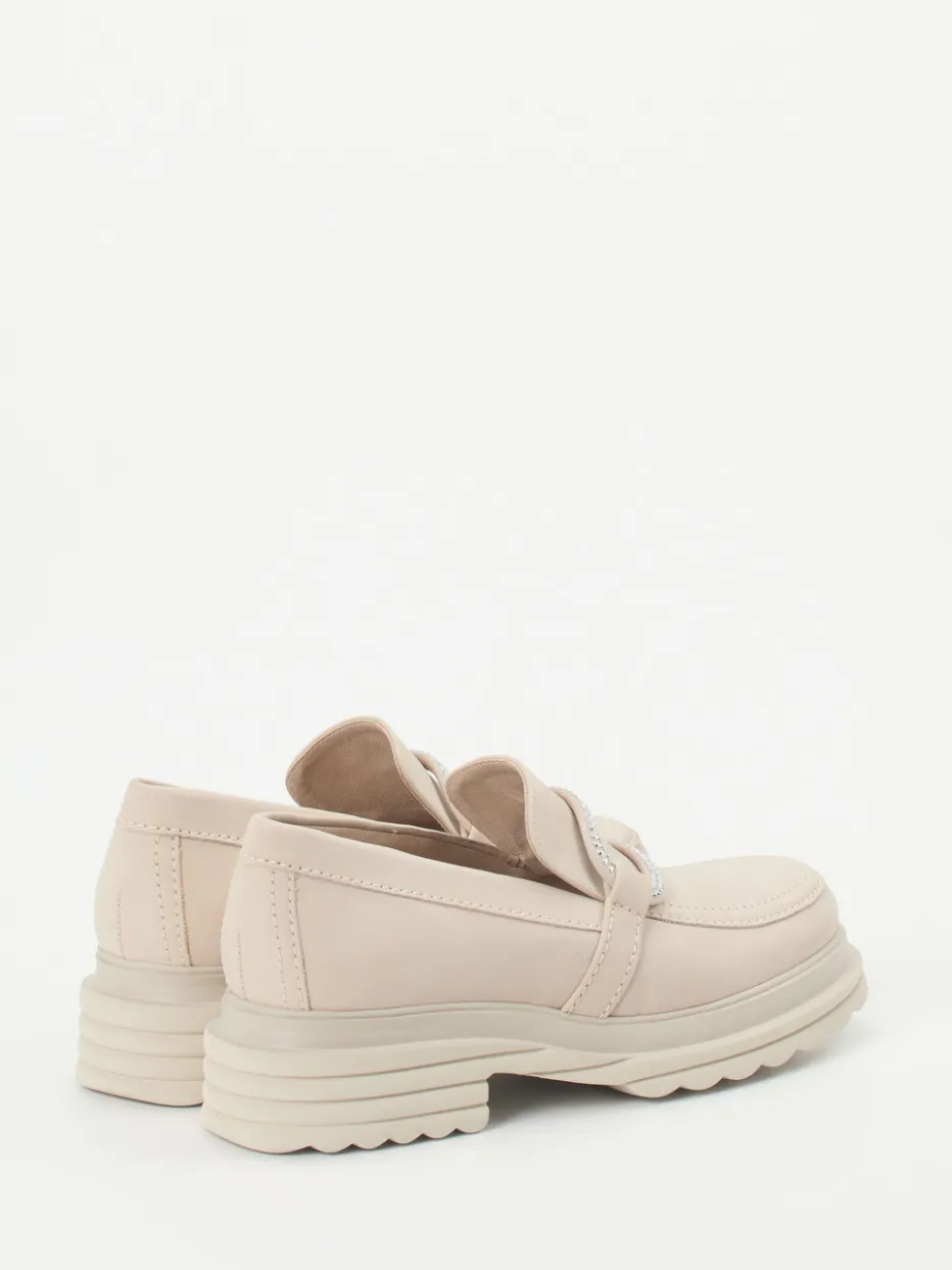 Dieser Damen-Loafer kombiniert samtig angeschliffenes Nubukleder mit funkelndem Strassbesatz und einer komfortablen Plateausohle – ideal für stilbewusste Auftritte zwischen Office und Freizeit.