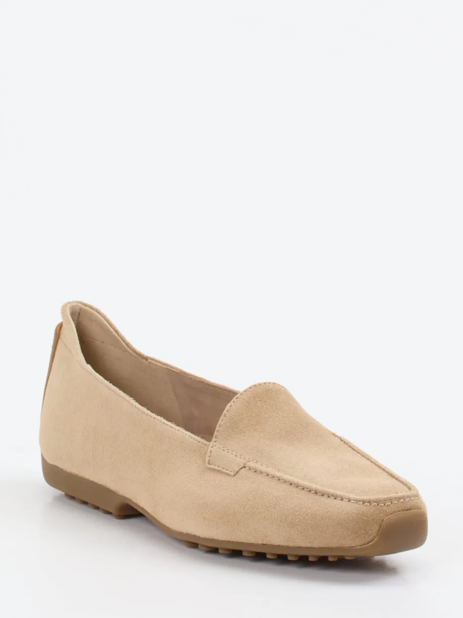 Eleganz für jeden Tag.Kennel & Schmenger präsentiert mit diesem Damen-Loafer ein Modell, das dezente Zurückhaltung mit luxuriöser Ausstrahlung kombiniert. Ideal für entspannte Office-Tage oder stilvolle Freizeitlooks überzeugt der flache Slipper durch hochwertiges Veloursleder mit samtiger Oberfläche in warmem Beigeton. Die klassisch-schmale Silhouette, die markante Mokassin-Naht sowie die profilierte Gummisohle mit gummierten Noppen und hochgezogener Fersenkappe bringen Komfort und dezente Sportlichkeit ins Spiel. Ton-in-Ton-Nähte unterstreichen die Klarheit des Designs. Perfekt zur naturfarbenen Stoffhose oder leichten Sommerbluse. Feinste Verarbeitung und durchdachte Funktionalität definieren diesen Schuh als unaufdringliches Statement im Zeichen des Quiet Luxury.