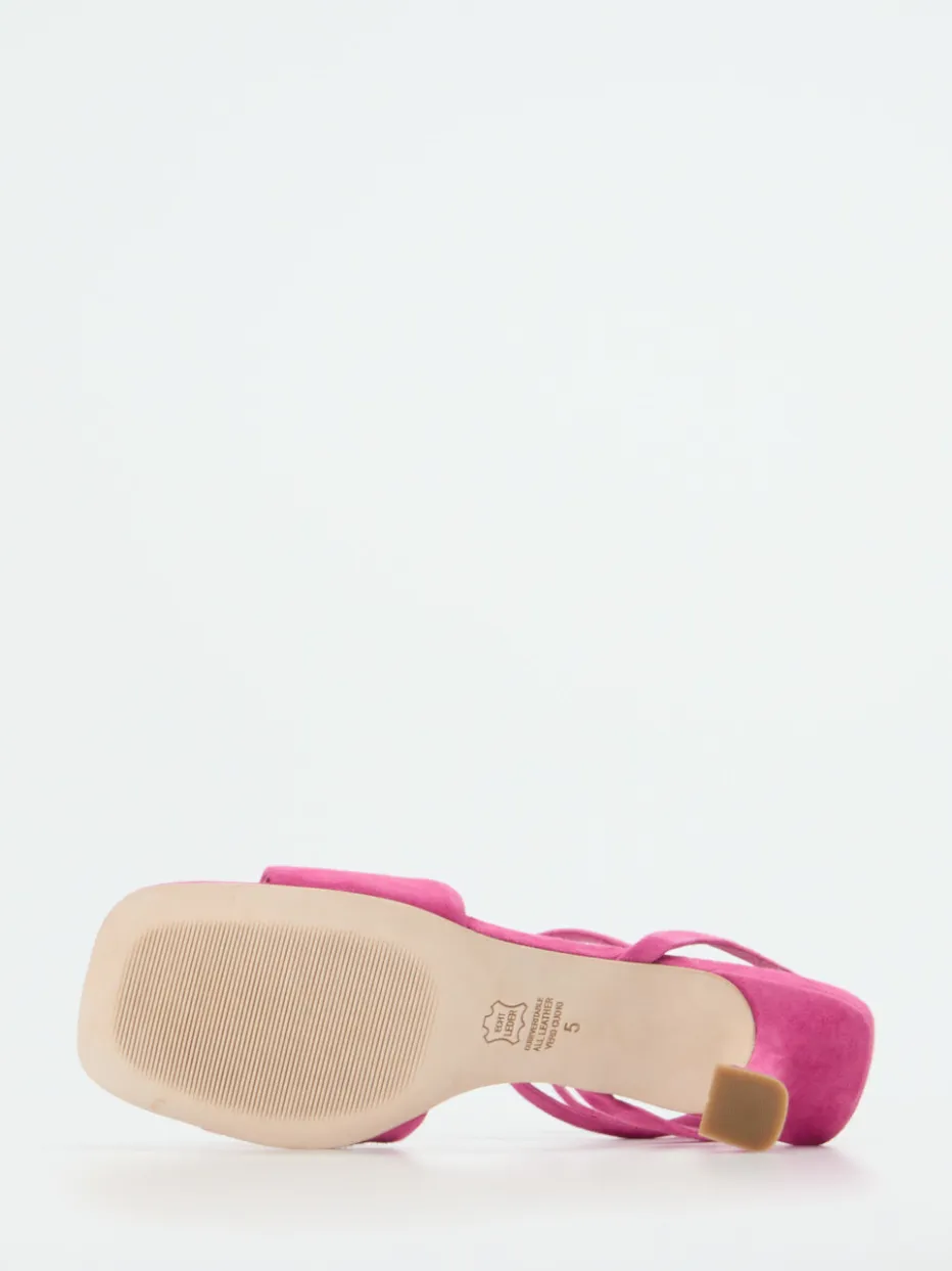 Mit klarem Fashion-Fokus kombiniert diese Sandalette luxuriöses Veloursleder in Pink mit einem stilvollen Kitten Heel und funkelndem Strassbesatz.