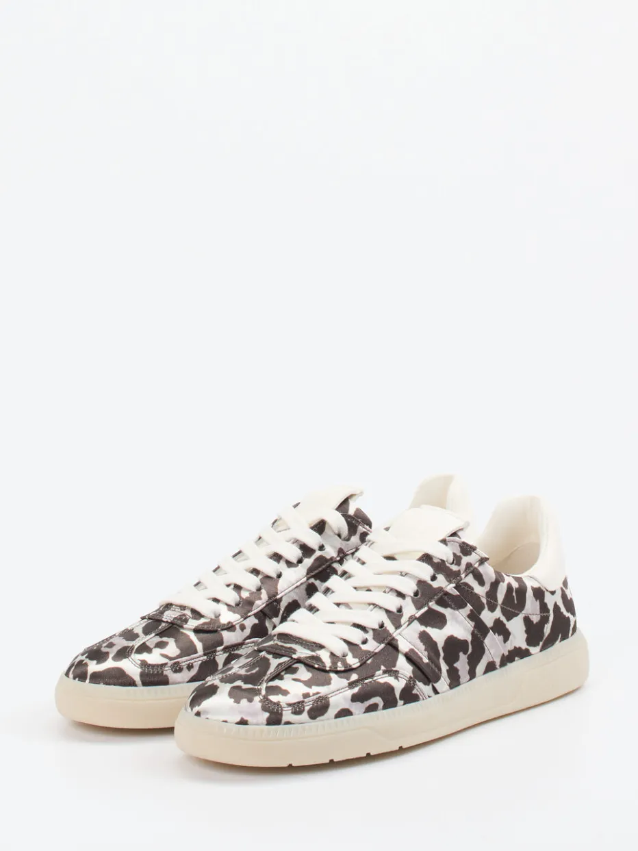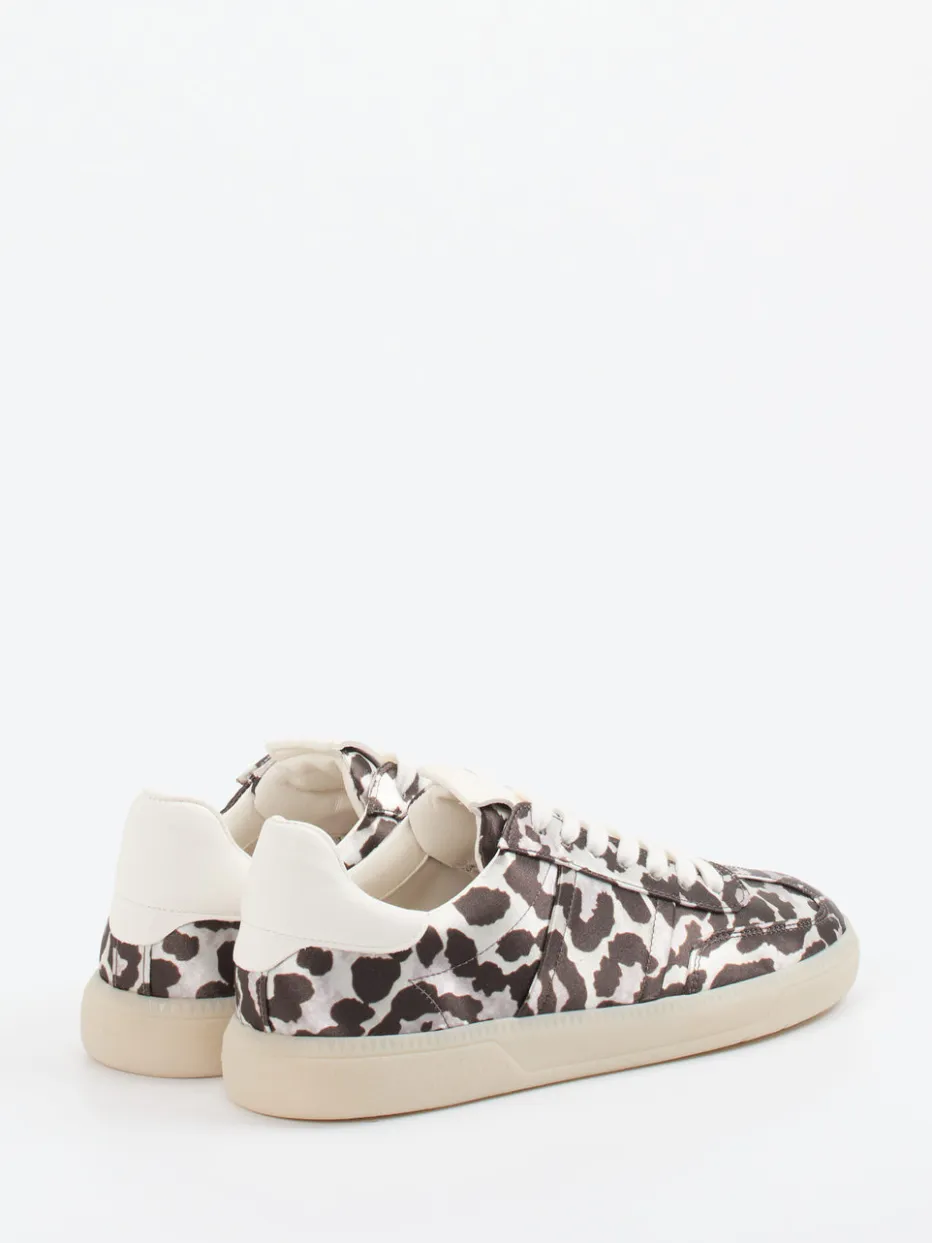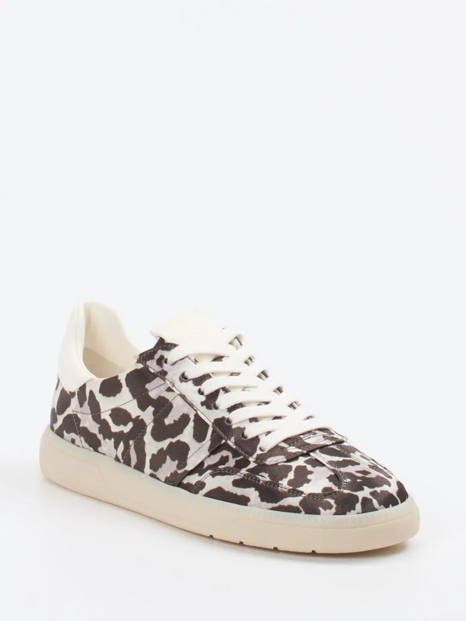 Ein trendbewusster Low-Top-Sneaker mit samtmattem Textil, Animal-Print und Kontrastbesatz – perfekt abgestimmt auf urbane Freizeitlooks der Saison.