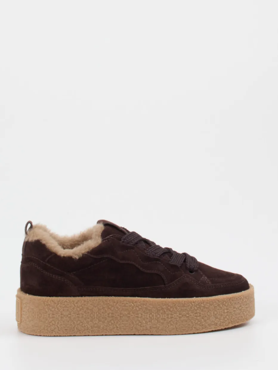 Dieser Plattform-Sneaker kombiniert weiches Veloursleder mit wärmendem Lammfellfutter – ideal für stilbewusste Herbsttage. Die strukturierte Plateausohle sorgt für Komfort und Trendfaktor.