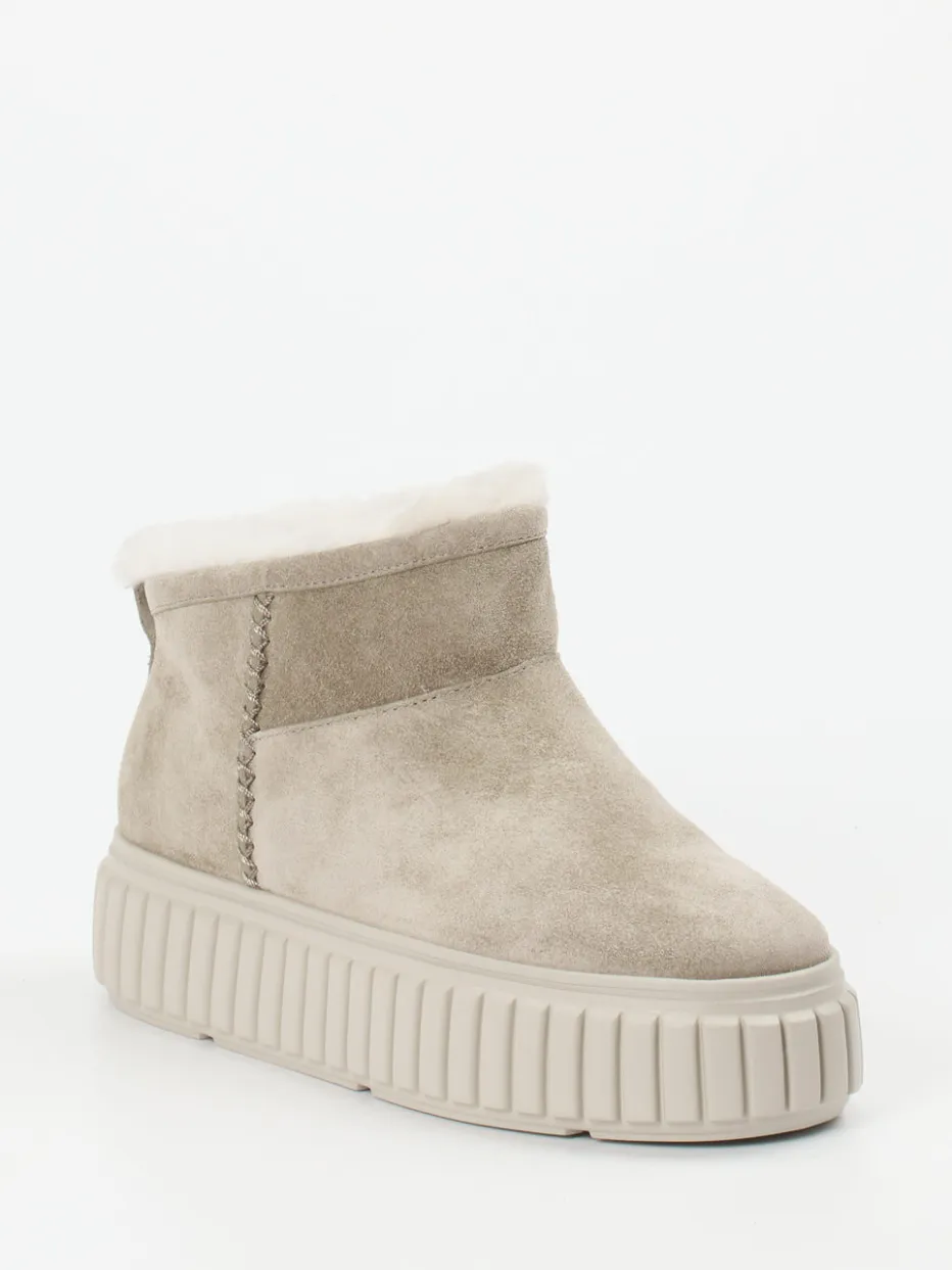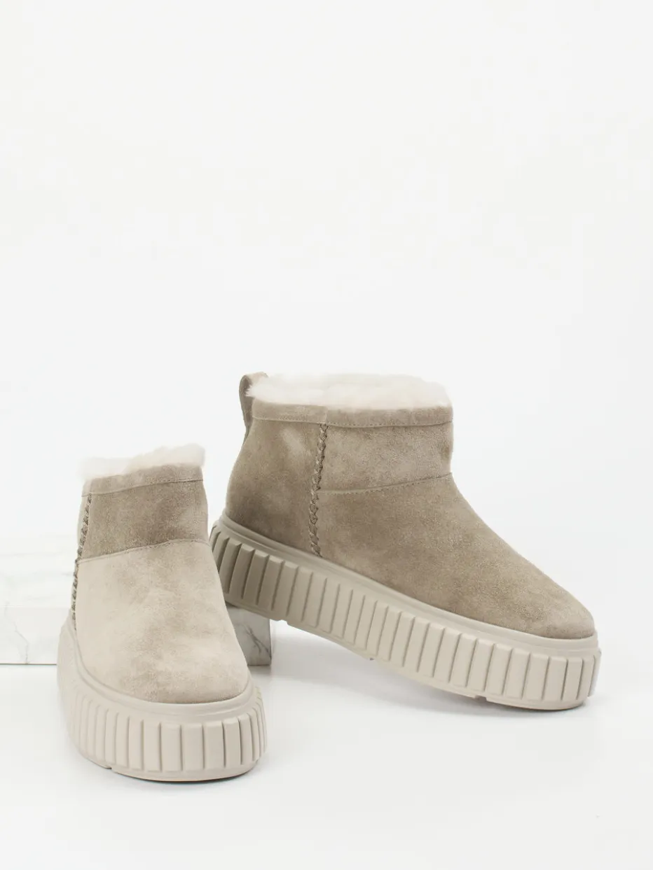 Diese gefütterten Stiefeletten vereinen samtig strukturiertes Lammleder mit moderner Plateauoptik und garantieren stilvollen Komfort an kalten Tagen.