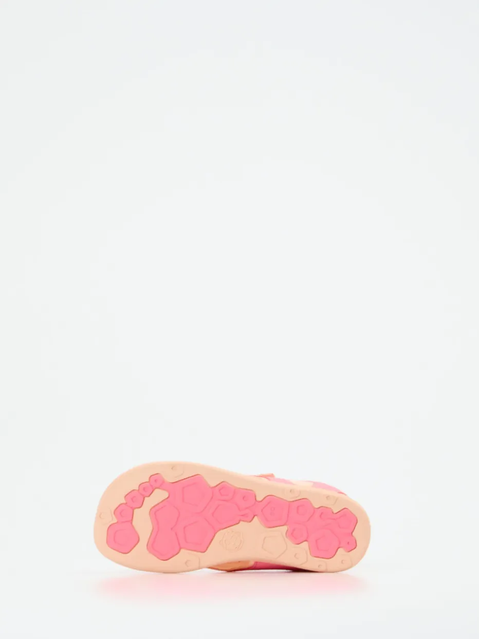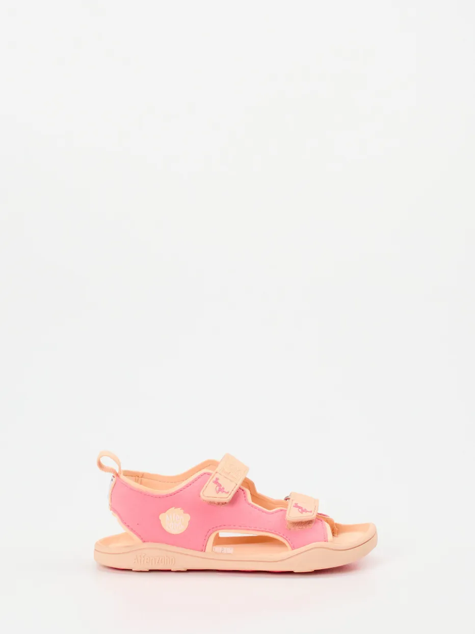 Softer Halt für kleine Abenteuer.Die Marke Affenzahn bringt mit diesen Kindersandalen eine funktionale Begleitung für warme Tage. Für Spielplatzbesuche, Urlaubsabenteuer oder den täglichen Weg in die Kita bieten die Sandalen angenehme Bewegungsfreiheit. Das rosa Textilmaterial besteht aus recycelten Fasern und zeigt sich in matter Optik, kontrastiert vom apricotfarbenen, ultraweichen Innenfutter aus Leder. Die offene, ergonomische Form, praktische Klettverschlüsse und eine Zuglasche sorgen für kinderleichtes Anziehen. Dazu bietet die flexible Gummisohle mit profilierter Struktur sicheren Halt. Im Look trifft Color-Blocking auf Y2K-inspirierte Farbigkeit – ideal für komfortaffine Kids mit Stil. Affenzahn steht für durchdachten Komfort in kindgerechtem Design.
