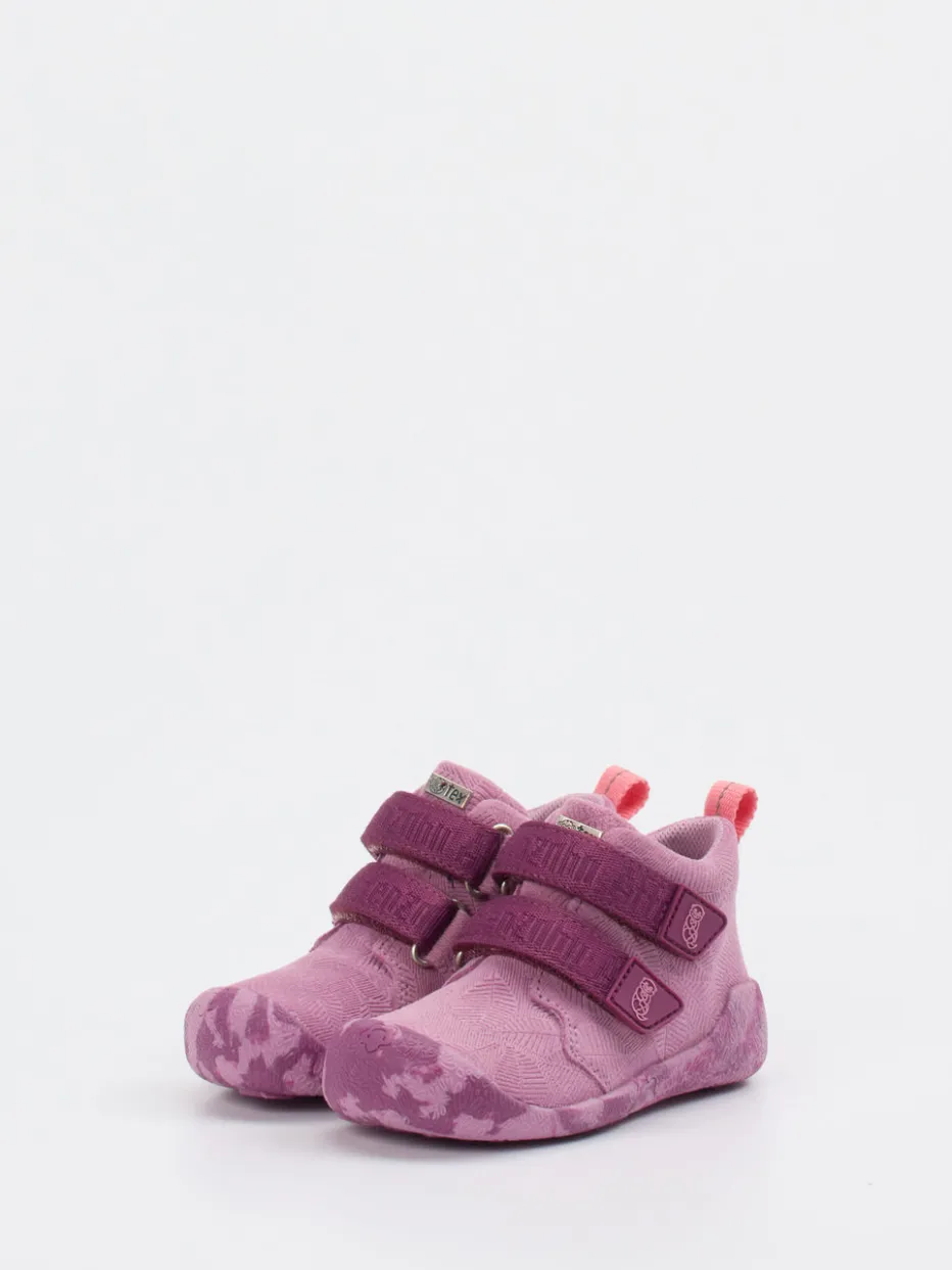 Farbenfrohe Funktion für kleine Entdecker.Affenzahn zeigt mit diesen Lauflernschuhen, wie durchdachte Kinderschuhe aussehen können. Ob zu Hause, in der Kita oder beim Spaziergang: Das Modell überzeugt mit weichem Veloursleder, kombiniert mit einer strukturierten Blattoberfläche. Die kräftige Rosa-Pink-Färbung wird von pflaumen- und korallfarbenen Akzenten ergänzt, was dem Design eine spielerische Leichtigkeit verleiht. Zwei praktische Klettverschlüsse ermöglichen kinderleichtes Anziehen, während die profilierte Gummisohle Trittsicherheit gibt. Die rund-kompakte Form und kontrastierende Fersenlasche runden den skandinavisch inspirierten Look ab. Ideal kombinierbar mit Leggings und Outdoorjacke. Affenzahn verbindet kindgerechtes Design mit zuverlässigem Outdoor-Komfort.