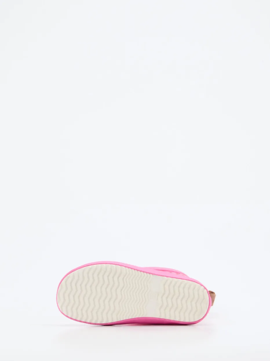 Outdoor-Spaß mit Stilfaktor.Bisgaard präsentiert mit diesem Kinder-Gummistiefel einen funktionalen Klassiker neu interpretiert. Ideal bei Schmuddelwetter und Matsch: Das Synthetikmaterial mit glänzender Oberfläche hält Nässe zuverlässig fern, während das beige Textilfutter für Tragekomfort sorgt. Der leuchtend pinke Peace-Zeichen-Print verleiht dem Modell einen Y2K-inspirierten Streetstyle-Look. In klassischer Schaftform gehalten und mit einer rutschfest profilierten Gummisohle versehen, bietet der Schlupfstiefel festen Halt. Eine Kunstleder-Zuglasche erleichtert das Anziehen. Funktionale Mode für Kinder mit Mut zur Farbe – typisch Bisgaard.