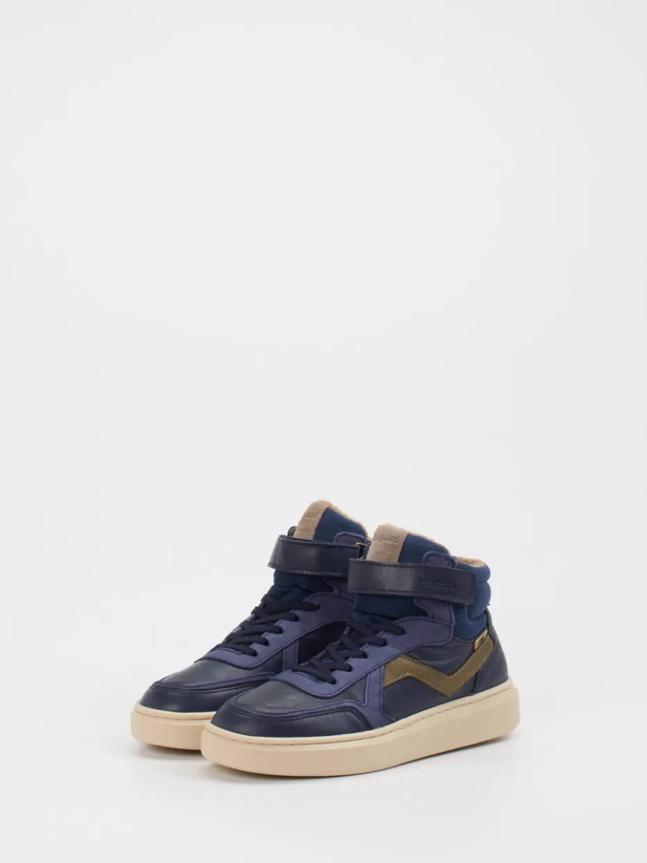 Für aktive Kids bei Herbstwetter.Bisgaard präsentiert mit diesem Kinder-High-Top eine gelungene Verbindung aus Funktion und Streetwear-Anmutung. Ob Schulweg, Spielplatz oder Freizeit – dieser Sneaker überzeugt durch hochwertiges Kalbleder mit matter Optik sowie warmem braunem Fleecefutter. Das dunkelblaue Design wird durch eine olivgrüne Logoapplikation akzentuiert. Die sportlich-klassische High-Top-Form mit Schnürung und stabilem Klettverschluss bietet sicheren Halt, während die profilierte Gummisohle Trittsicherheit gewährleistet. Inspiriert vom Y2K-Retrostil fügt er sich stilvoll in moderne Kindergarderoben ein. Ideal zu gefütterten Jacken oder Mütze in dunklen Tönen. Komfortabler Wetterschutz mit skandinavischer Designnote.
