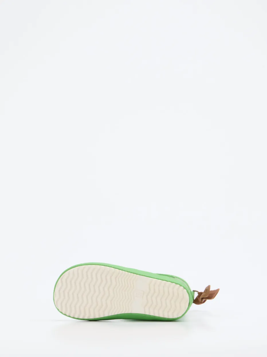 Fröhlich durch Regen und Matsch.Bisgaard präsentiert mit diesem Kinder-Gummistiefel einen robusten Begleiter für nasse Tage. Ob Schulweg oder Pfützenspaß im Park – durch das Naturkautschuk-Material mit matter Oberfläche verbindet der Stiefel Funktionalität mit einem angenehmen Tragegefühl. Das apfelgrüne Design mit Allover-Peace-Zeichen bringt Farbe ins Spiel, während die schlichte, schmale Silhouette und die kontrastierende Leder-Zuglasche einen stilvollen Akzent setzen. Die profilierte Gummisohle sorgt für Trittsicherheit auf rutschigem Untergrund. Ideal für trendbewusste Kids in der Übergangszeit – passend zur Streetwear-inspirierten Kindermode. Verlässlicher Wetterschutz mit kindgerechter Ästhetik – Bisgaard vereint Komfort mit Stil.