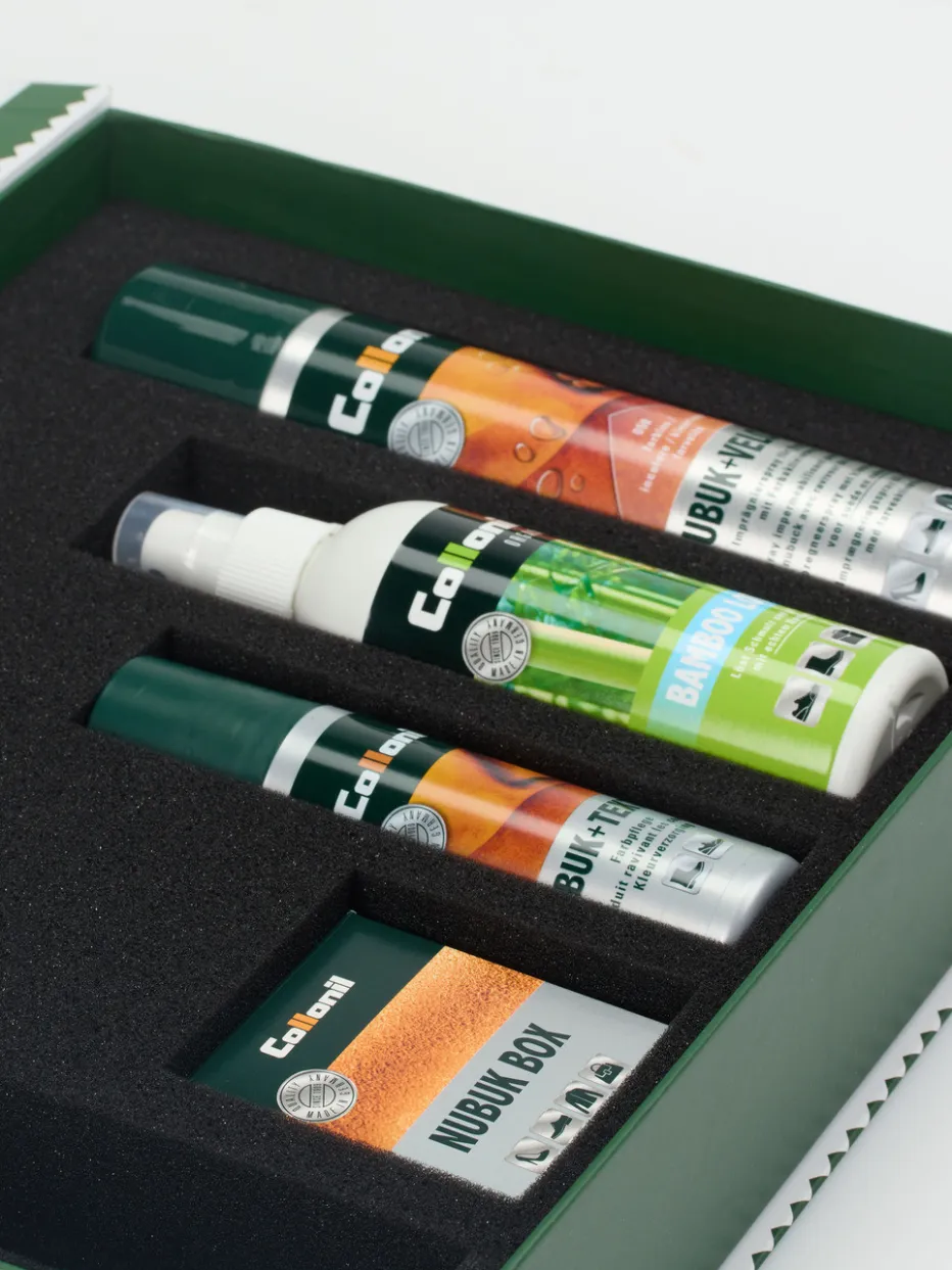 Das Nubuk & Velours Set von Collonil vereint funktionale Ästhetik mit nachhaltiger Pflege. Ideal für sensible Materialien wie Rauleder, Nubuk und Textilien.