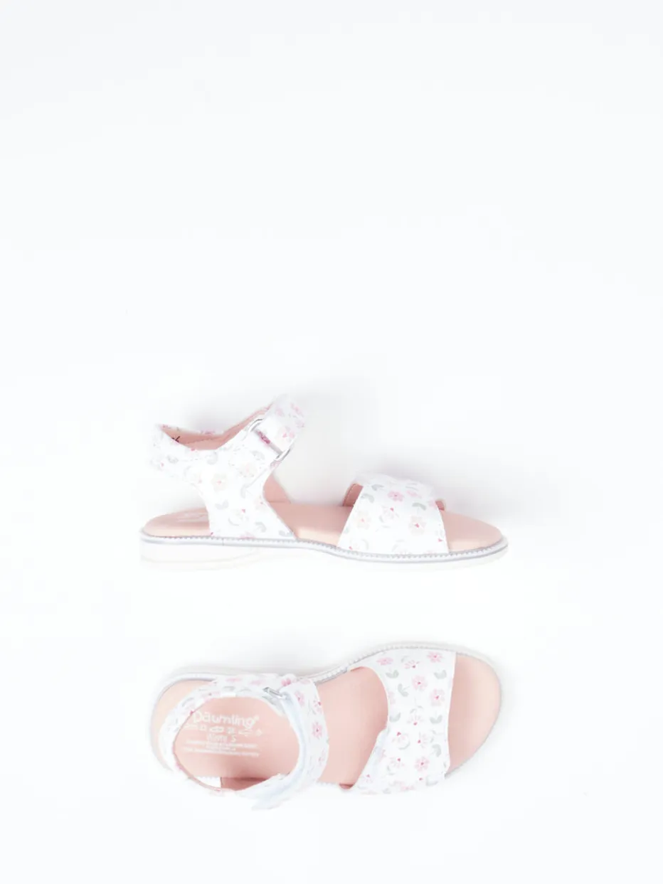 Bequem durch den Sommer.Däumling zeigt mit dieser Kindersandale eine durchdachte Kombination aus Komfort und Stil. Für sommerliche Tage, an denen Bewegungsfreiheit und ein sicherer Sitz gefragt sind, überzeugt diese Klettsandale mit weichem Microfaserfutter und einer flexiblen Gummisohle. Das weiße, geprägte Leder harmoniert mit zarten Pastellakzenten in Rosa und Grün, ergänzt durch ein verspieltes florales Allover-Muster. Dank mehrfacher Klettverschlüsse lässt sich die Sandale optimal anpassen; die gepolsterte Innensohle bietet zusätzlichen Komfort. Der Look passt ideal zum Romantic-Pastels-Trend der aktuellen Saison. Zuverlässige Alltagstauglichkeit trifft auf detailverliebtes Kinderschuhdesign von Däumling.