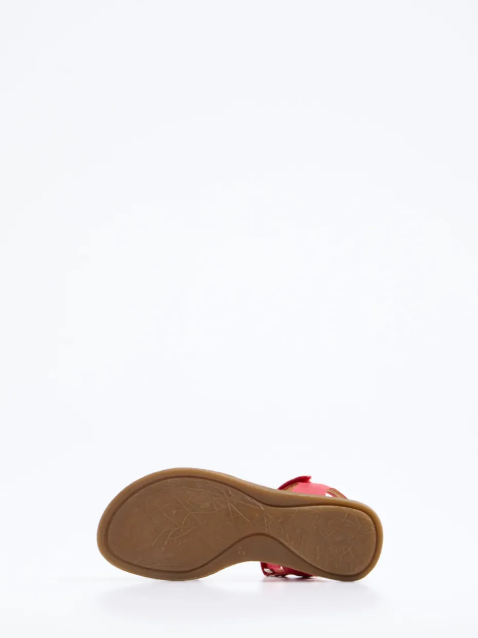 Florale Leichtigkeit für Kinderfüße.Froddo präsentiert mit dieser Mädchensandale ein liebevoll gestaltetes Modell für sonnige Alltagserlebnisse. Das Obermaterial aus hochwertigem Kalbleder zeigt sich in leuchtendem Kirschrot und überzeugt durch eine matte Oberfläche mit Ton-in-Ton-Blumendetails. Die weiche Ledersohle und das naturfarbene Lederfutter bieten hohen Tragekomfort. Ein praktischer Klettverschluss erleichtert das An- und Ausziehen, während die flache, rutschfeste Gummisohle kindgerechte Sicherheit verspricht. Der Look lässt sich ideal mit Sommerkleidern und leichten Accessoires kombinieren – etwa mit einem Sonnenhut oder floralen Prints. Froddo steht für zeitlose Kindermode mit durchdachter Funktionalität und charmantem Design.