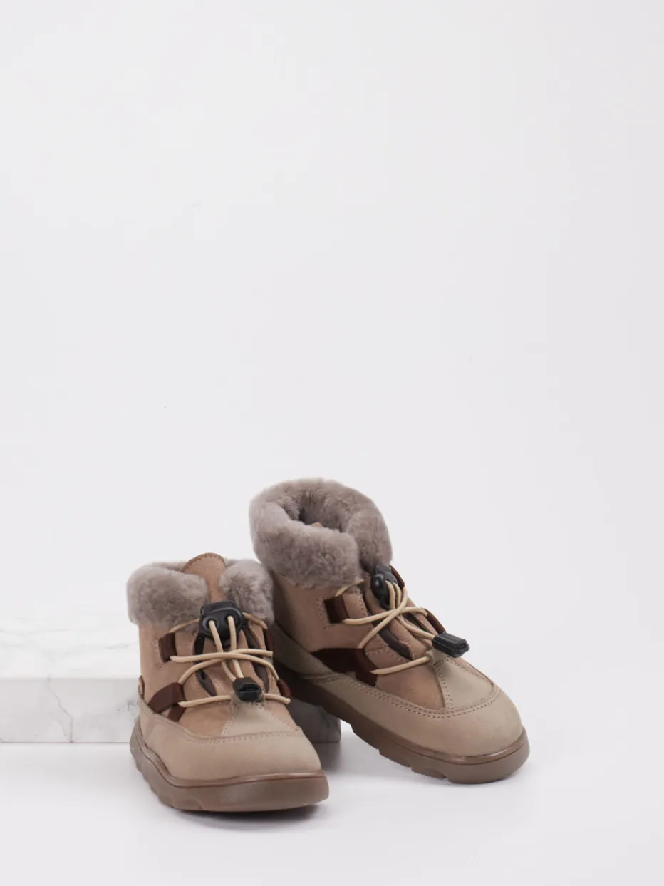 Warm durch den Winter, stilvoll unterwegs.Froddo präsentiert hochwertige Winterboots für Kinder aus der Herbst/Winter-Kollektion. Für den Schulweg bei Frost, den Rodelausflug oder aktive Nachmittage im Freien: Diese knöchelhohen Boots vereinen samtig angeschliffenes Nubukleder mit robustem Textil und warmem Kunstfell-Innenfutter in einem funktionellen Design. Die beigebraune Farbgebung ist vielseitig kombinierbar, tonale Nähte und zweifarbige Zugbänder setzen dezente Akzente. Dank Schnellschnürsystem und elastischer Toggleschließe ist auch das Anziehen kinderleicht. Die griffige Gummisohle bietet Halt auf winterlichem Untergrund. Ein outdoor-inspiriertes Modell mit komfortbetontem Charakter – typisch Froddo.