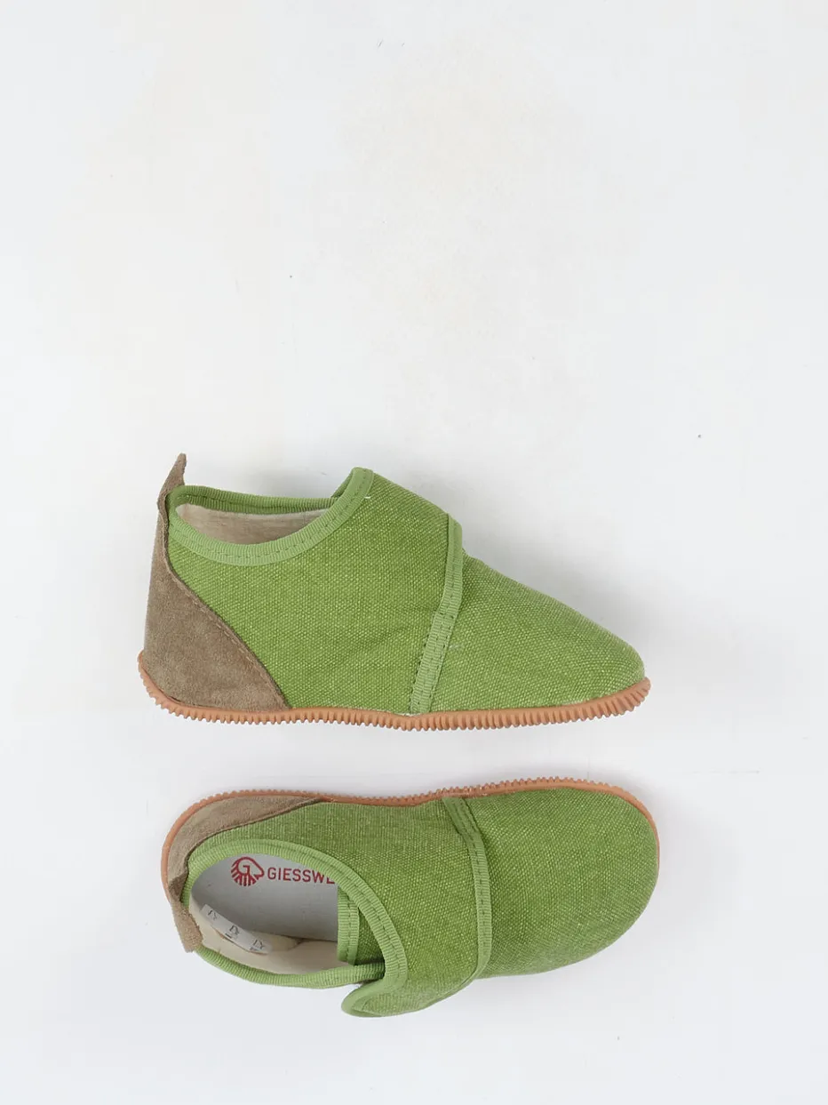 Bequemer Einstieg für kleine Füße.Die Marke Giesswein präsentiert komfortbetonte Kinder-Hausschuhe mit durchdachtem Design für Alltag und Zuhause. Die grasgrüne Farbgebung trifft auf weiches Textilmaterial, ergänzt durch eine samtig anmutende Fersenpartie aus Veloursleder. Der breite Klettverschluss ermöglicht ein leichtes Anziehen und sorgt für stabilen Halt. Eine rutschfeste Gummisohle schützt vor Nässe und verstärkt die Alltagstauglichkeit. Ton-in-Ton-Einfassungen und ein seitliches Markenlabel betonen das unaufdringliche Design im skandinavischen Stil – perfekt für Nachhaltigkeits-orientierte Familien. Ideal kombinierbar mit Frottee-Hausanzug oder Wollsocken. Ein Hausschuh mit hoher Alltagstauglichkeit – ökologisch inspiriert und kindgerecht umgesetzt.
