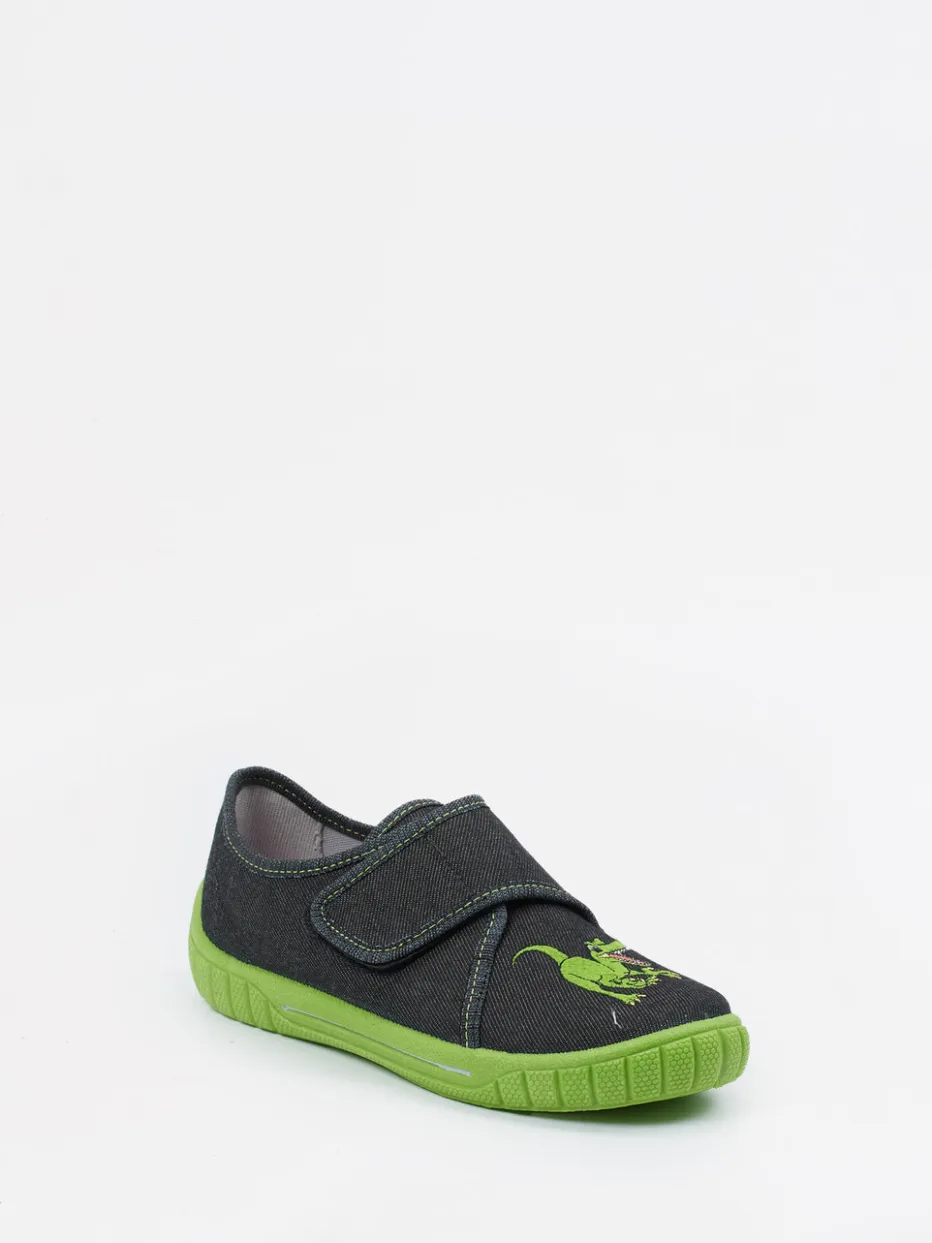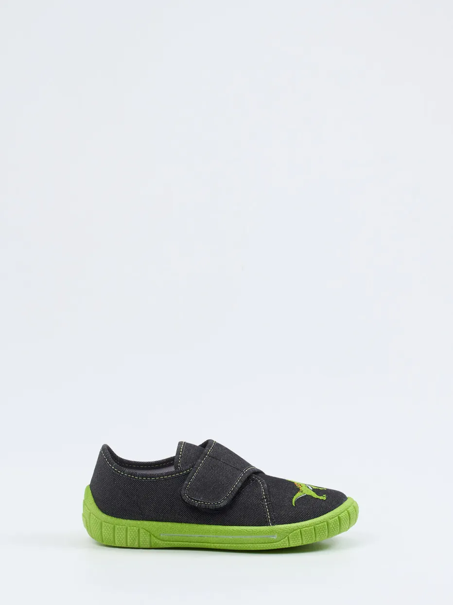 Dino-Look für kleine Abenteurer.Superfit präsentiert diesen klassischen Kinder-Hausschuh mit praktischem Klettverschluss und markantem Look. Ob Zuhause oder in der Kita – dieser anthrazitfarbene Hausschuh mit auffälligem Dino-Motiv auf dem Spann bietet hohen Komfort bei bestem Halt. Gefertigt aus robustem Textil mit matter Oberfläche und grünem Kontrastnähgarn, ergänzt durch eine sehr flexible, grasgrüne PU-Sohle mit hochgezogener Fersenkappe. Der flache Schnitt garantiert Bewegungsfreiheit, während der Klettverschluss einfaches An- und Ausziehen ermöglicht. Der „Character Print“-Trend und Streetwear-Einflüsse treffen hier auf Alltagstauglichkeit. Kindgerecht gestaltet – mit Superfit-Komfort für aktive Tage.